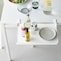 必要なときにサッと広げて使える、テーブル横に取り付けられる折り畳み棚