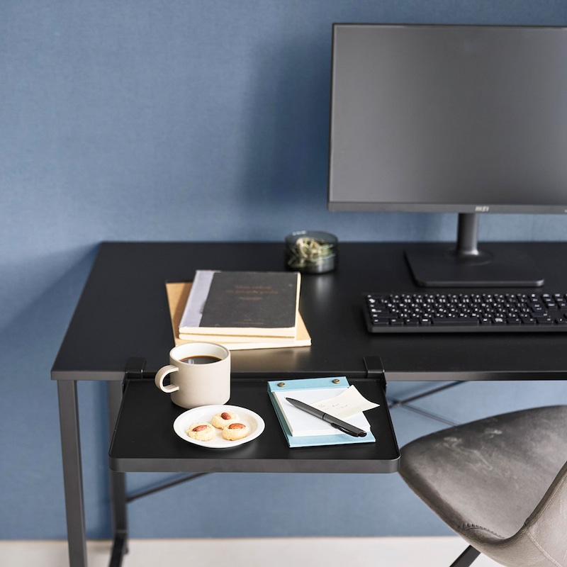 ●パソコンデスクでは、作業中の資料や飲み物・おやつの一時置きとしても活躍