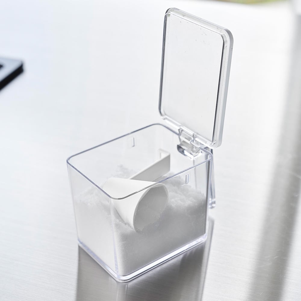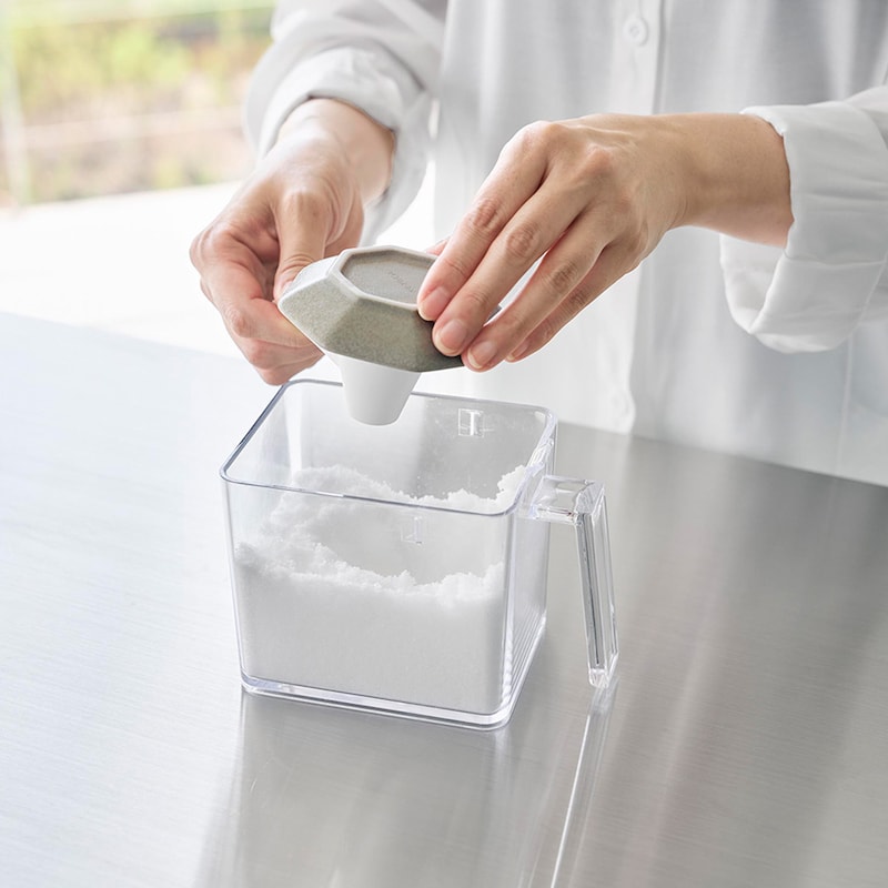 • スプーンのハンドル部分を容器の縁でかるくたたき、粗塩をなじませながら先端まで行き渡らせます