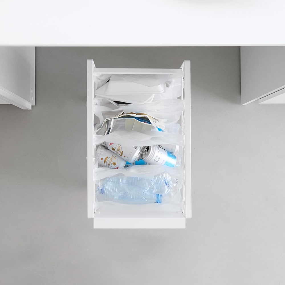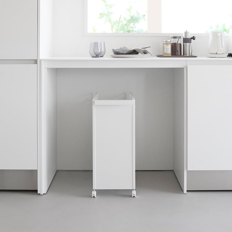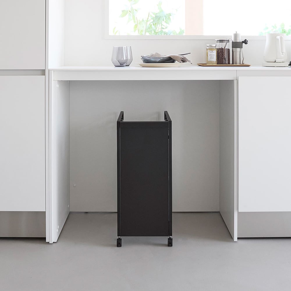 ●置き場所に困りがちなダストワゴンを、キッチンカウンター下にすっきり収納でき、サッと捨てやすく便利。