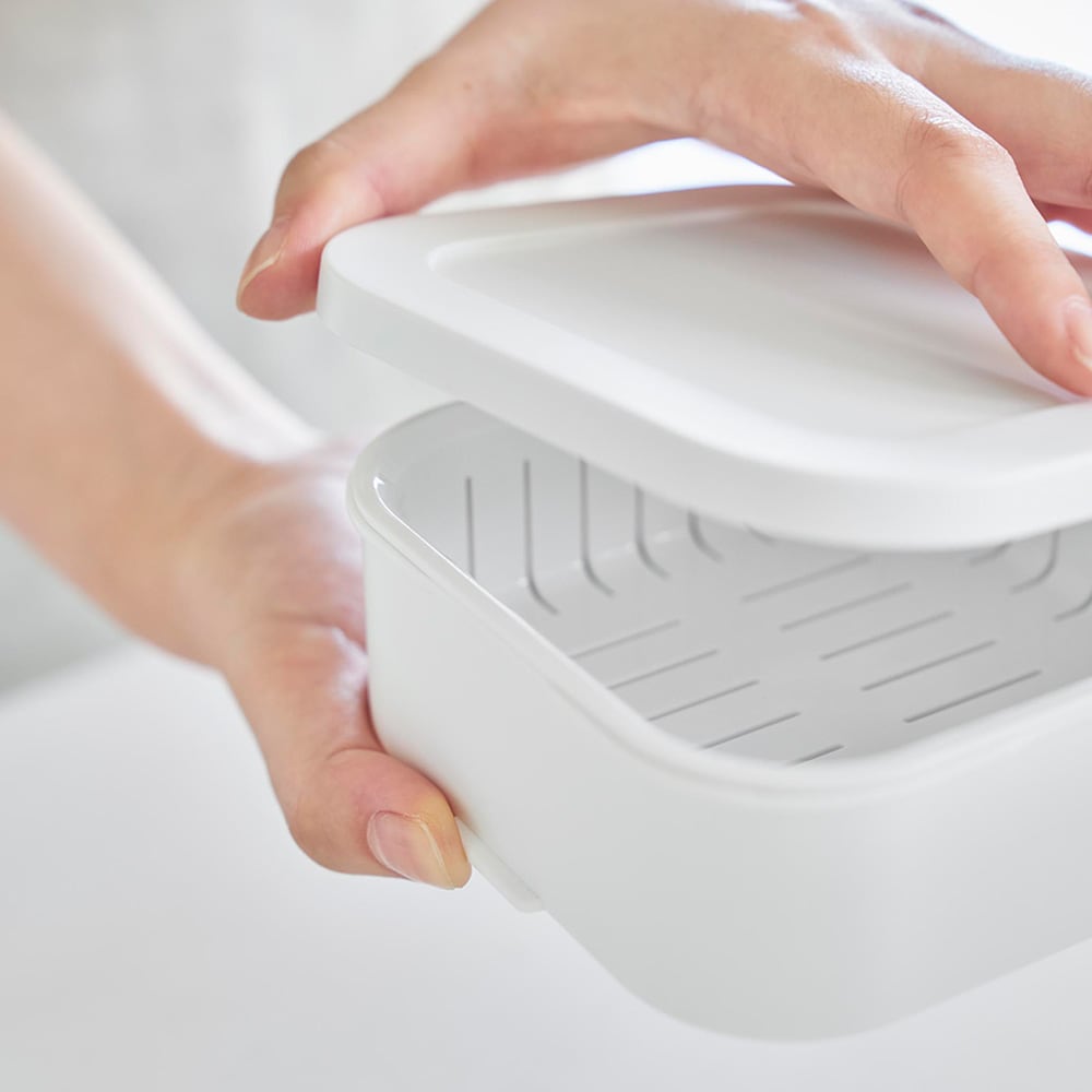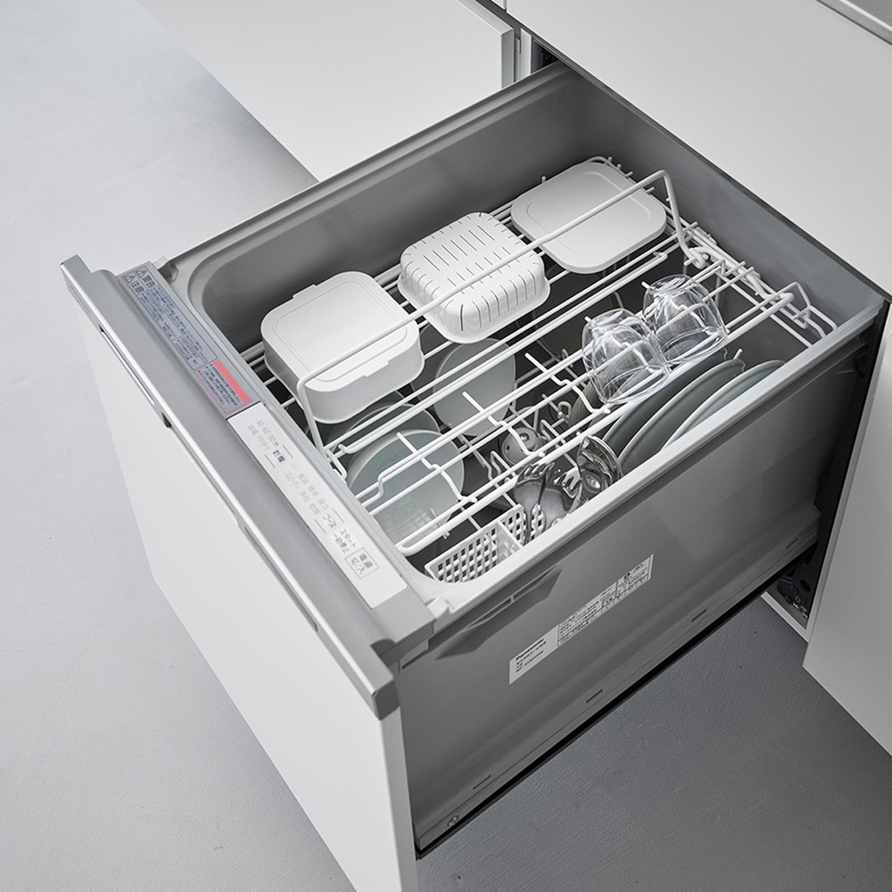 ●蓋をしたまま電子レンジで加熱でき、容器・ザル・蓋は凹凸が少なく洗いやすい設計で食器洗い乾燥機にも対応しています。