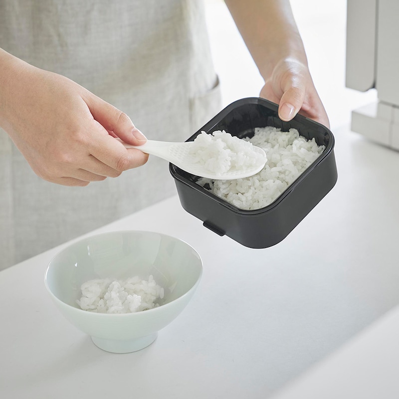 ●ザル付きなので、蒸し器のように蒸気が全体に行き渡り、温まりやすく一膳分(150g)の冷凍ごはんがふっくらと炊き立てのように仕上がる容器です。