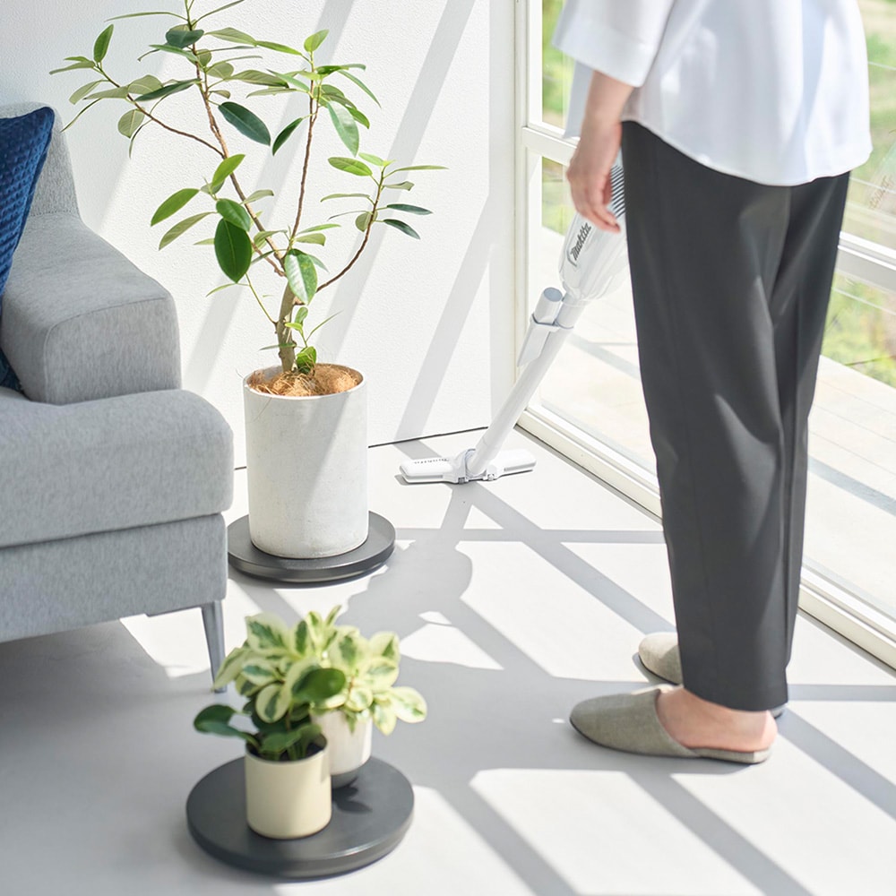 ●薄型キャスターが360度回転するので、重い鉢植えの観葉植物や家電もラクに移動でき、掃除や模様替えもスムーズに行えます。