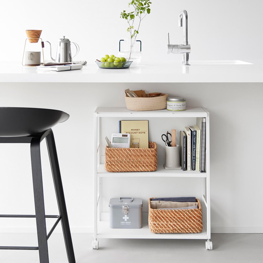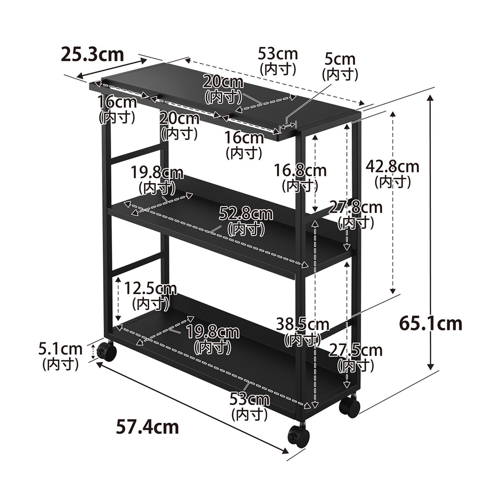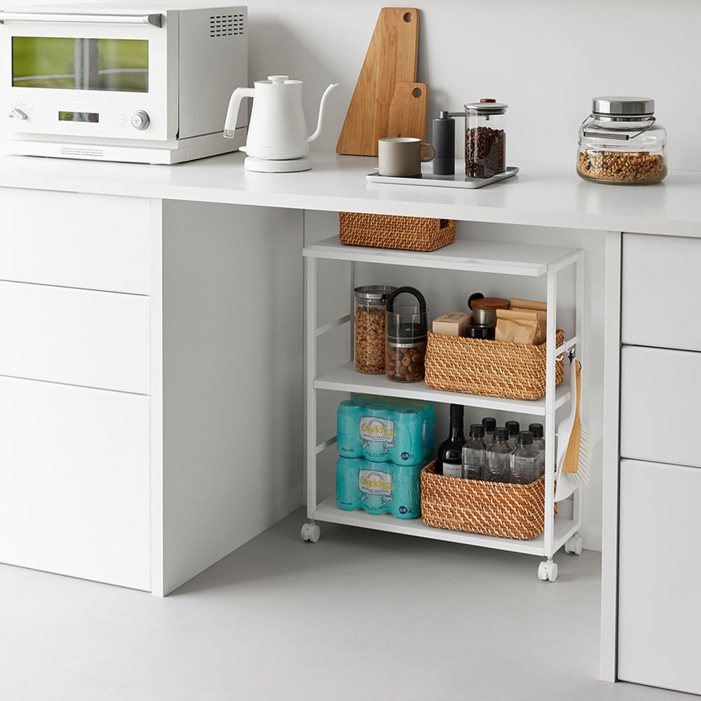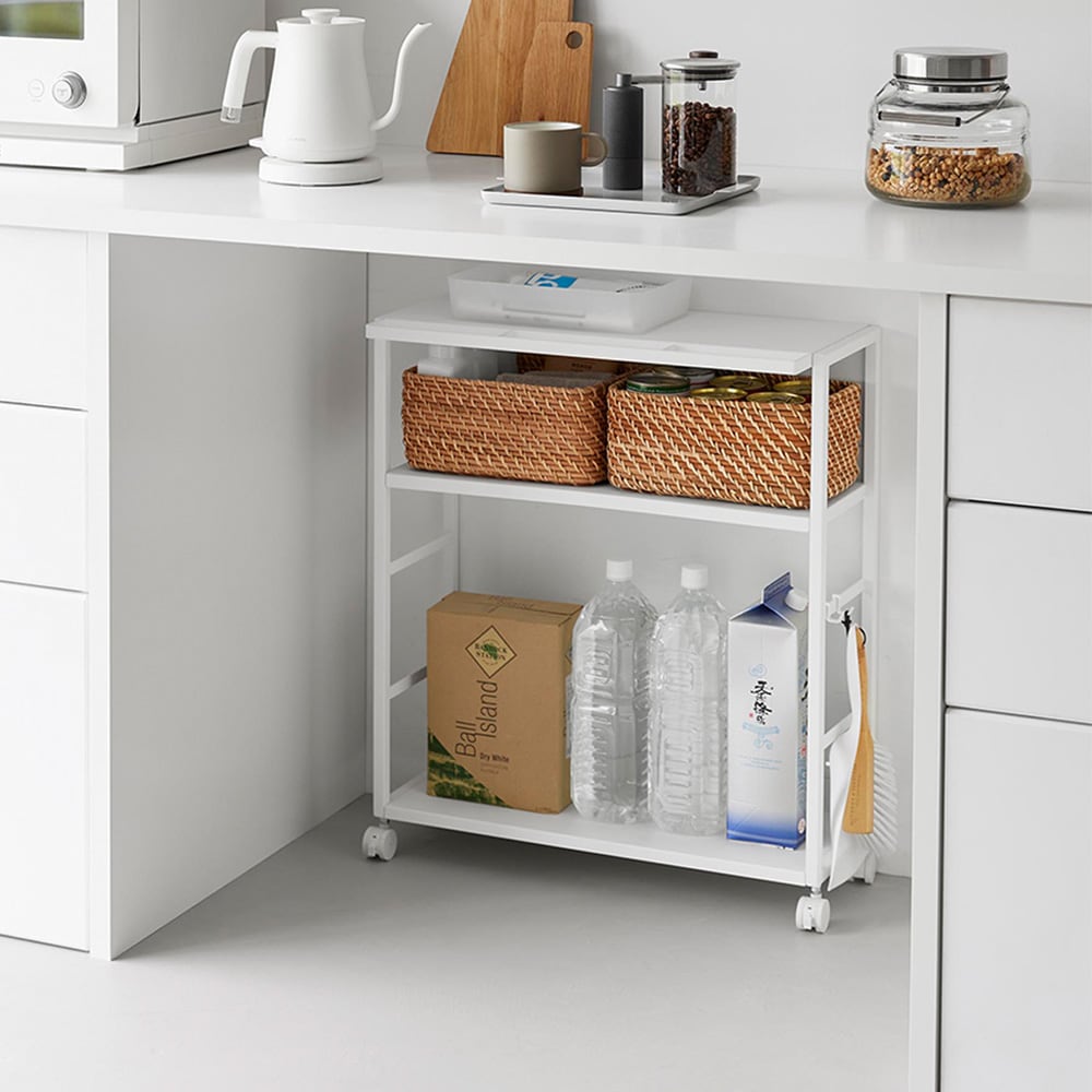 • ゴミ箱の後ろやカウンター周りを有効活用できる奥行20cmのスリムなワゴン