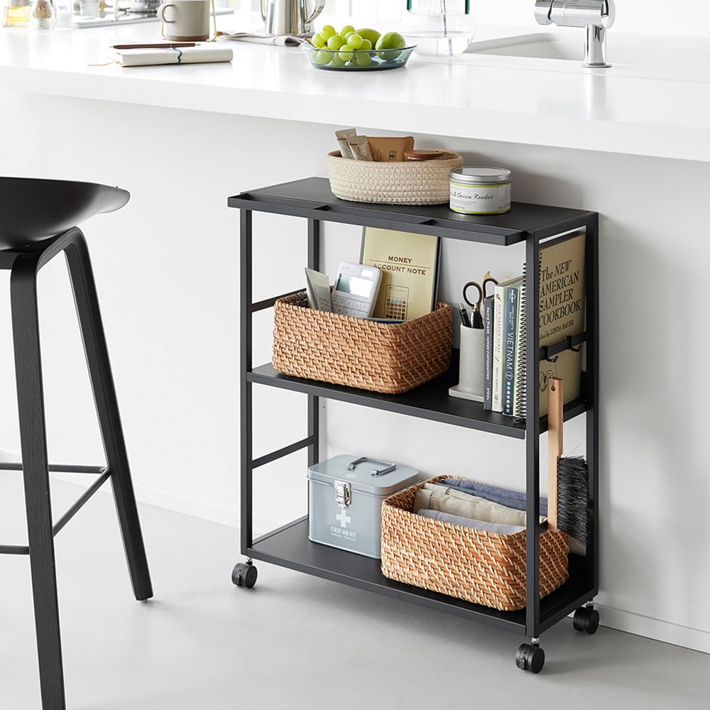 ゴミ箱裏やカウンターまわりのスペースを有効活用できる、奥行き20cmのスリムワゴンです。