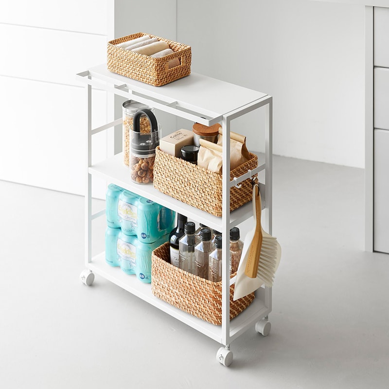 ゴミ箱の後ろやカウンター周りを有効活用できる奥行20cmのスリムなワゴン