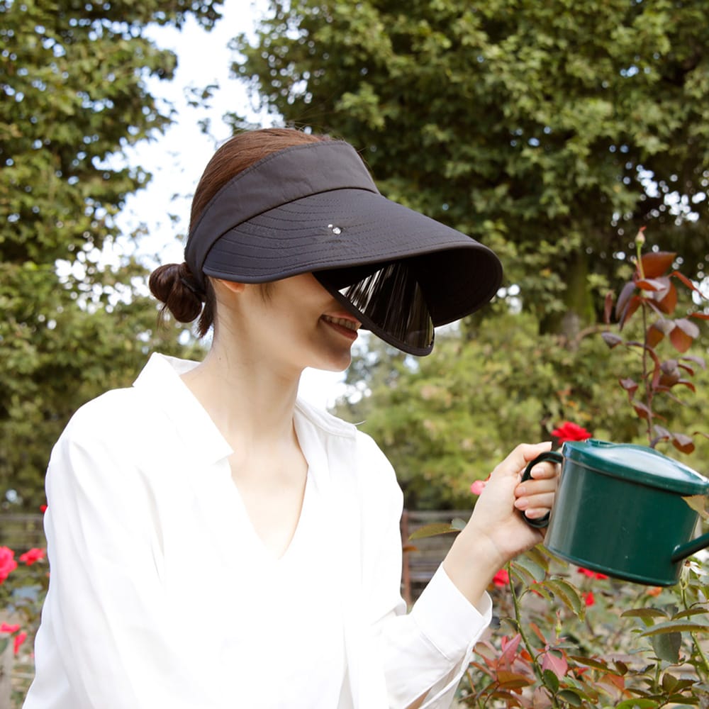 大きなツバと格納式グラスで紫外線からWプロテクト