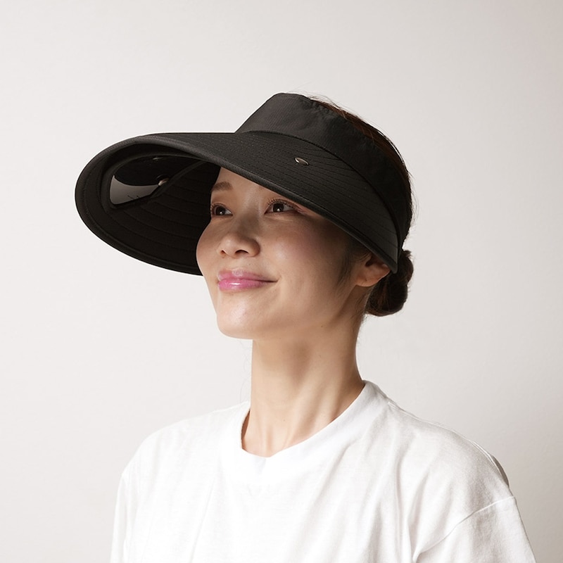 • 大きなツバと格納式グラスで紫外線からWプロテクト