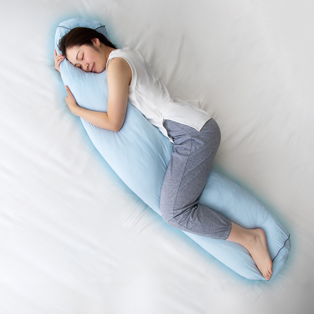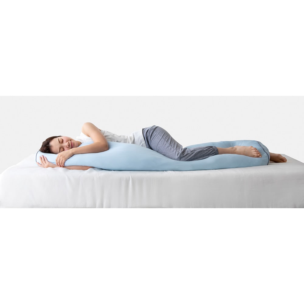 ひんやり接触冷感生地で、快眠サポート。巻いて入れるだけ。旅先や出張先でも抱き枕が作れる。ストレッチ素材、ロングサイズ、接触冷感。