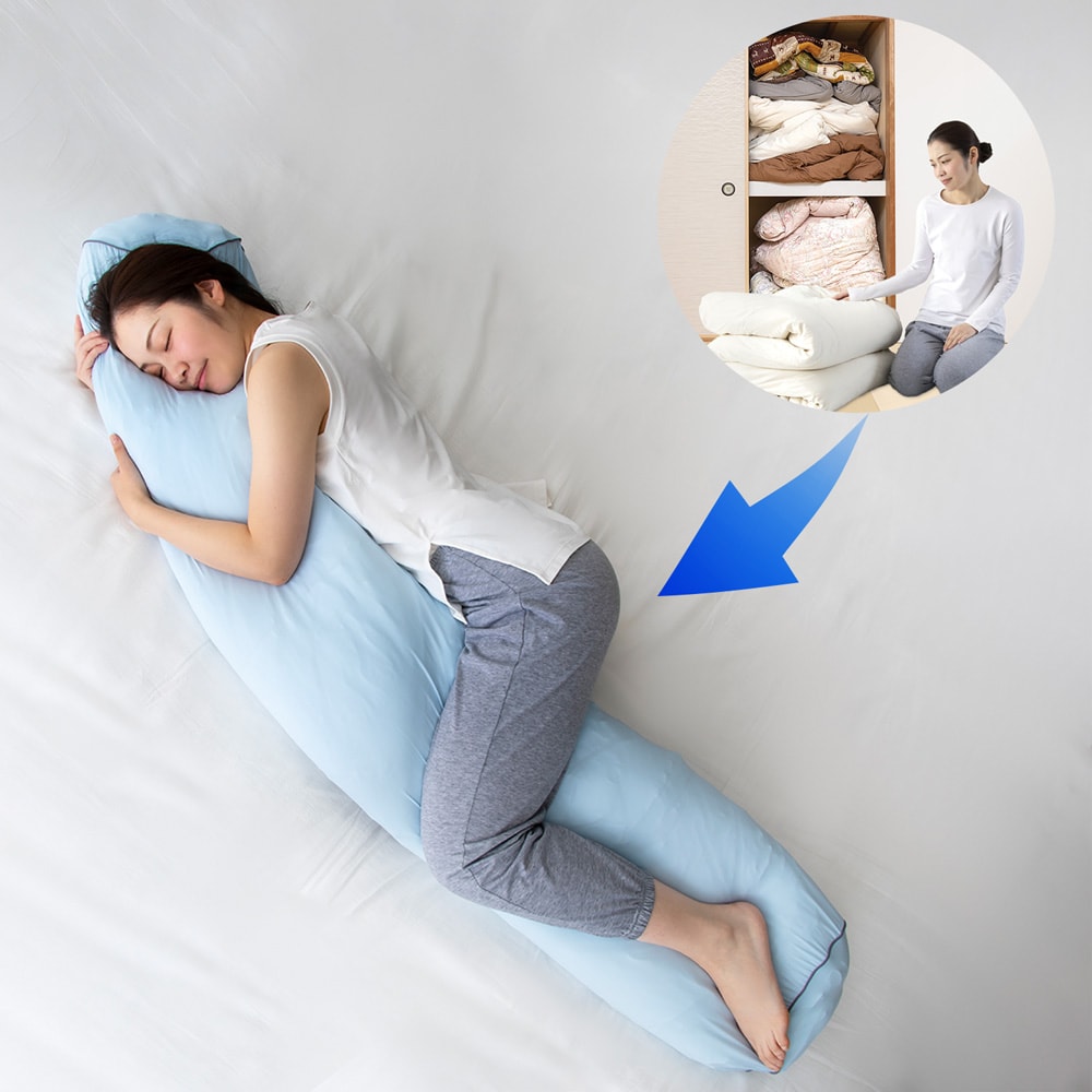 • 収納に困る厚手の布団が、ながーい抱き枕に大変身!