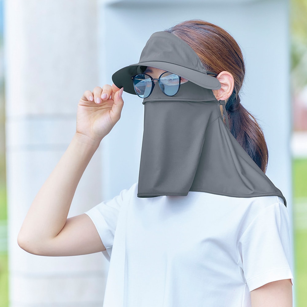 日差しを遮るフェイスガード×バイザーで顔まわり徹底ガード