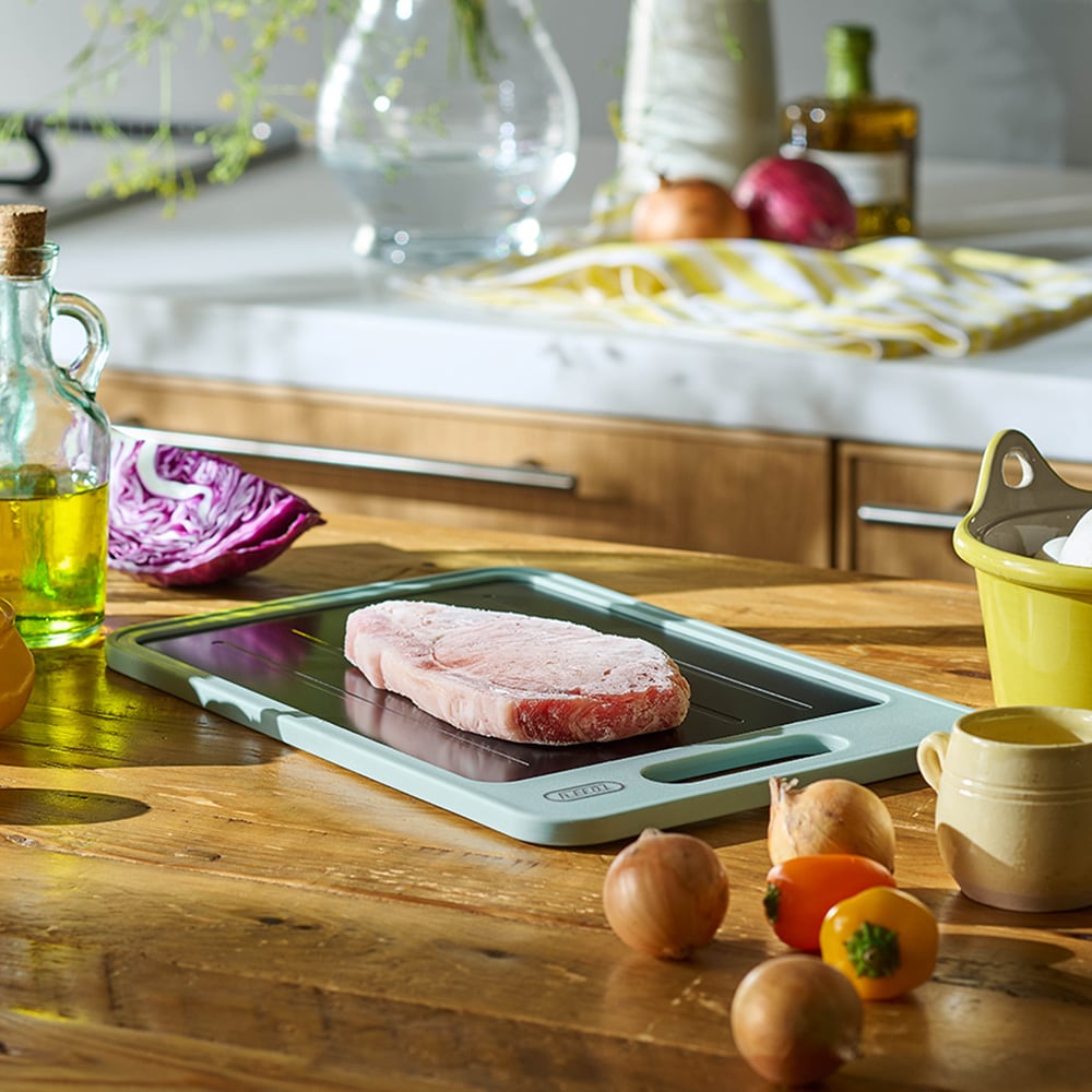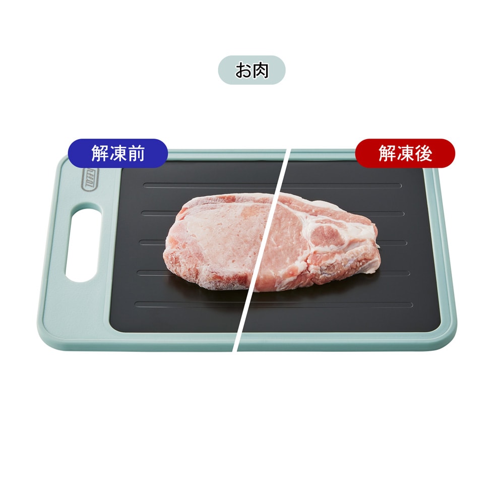 急速解凍プレートと抗菌まな板の1枚2役!