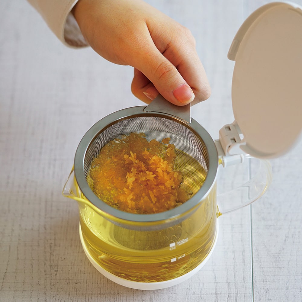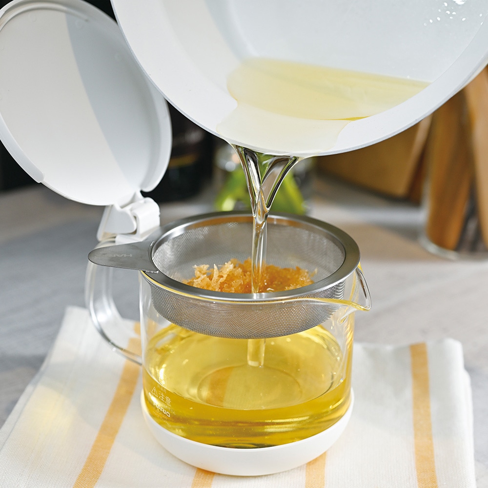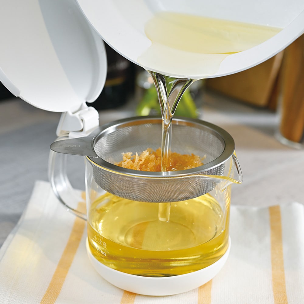 ※油が高温の状態で濾すことは大変危険です。使用後は必ず30分以上置き、十分に温度が下がったことを確認し、濾してください。
