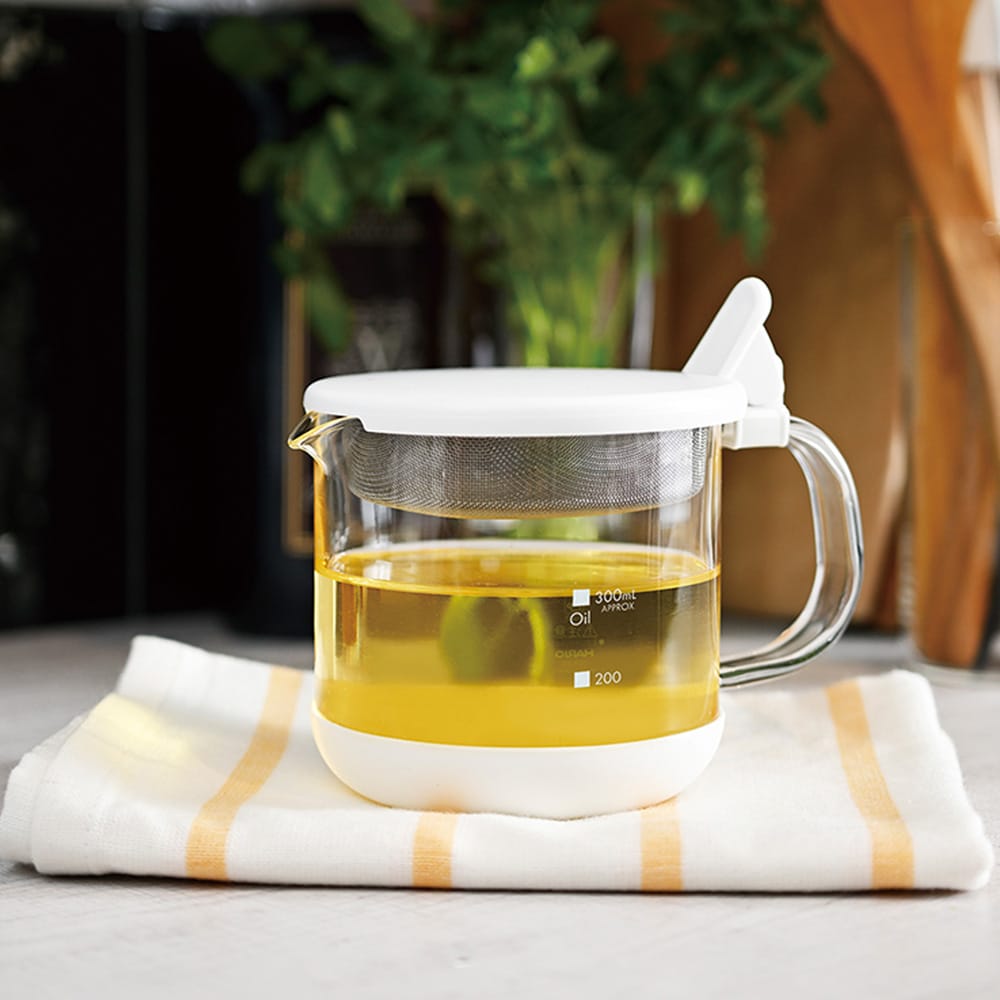 もう油の替えどきに迷わない。透明で片手で注げる耐熱ガラス製ポット