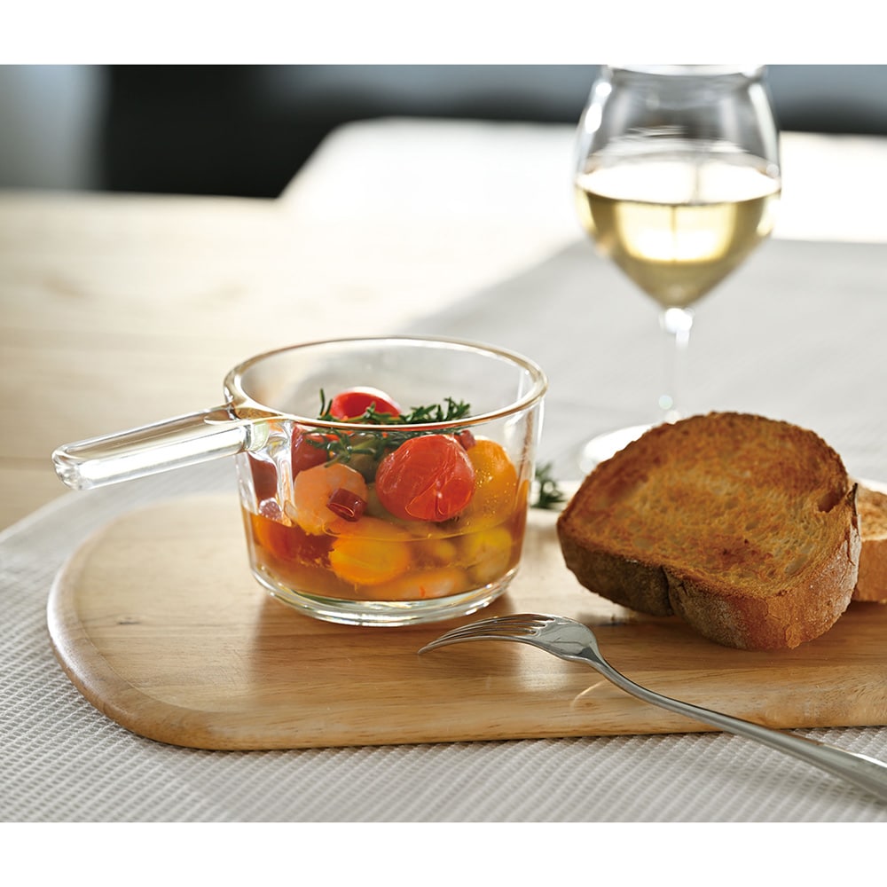 一人分や副菜もレンジで簡単。そのまま出せる耐熱ガラスの小鍋