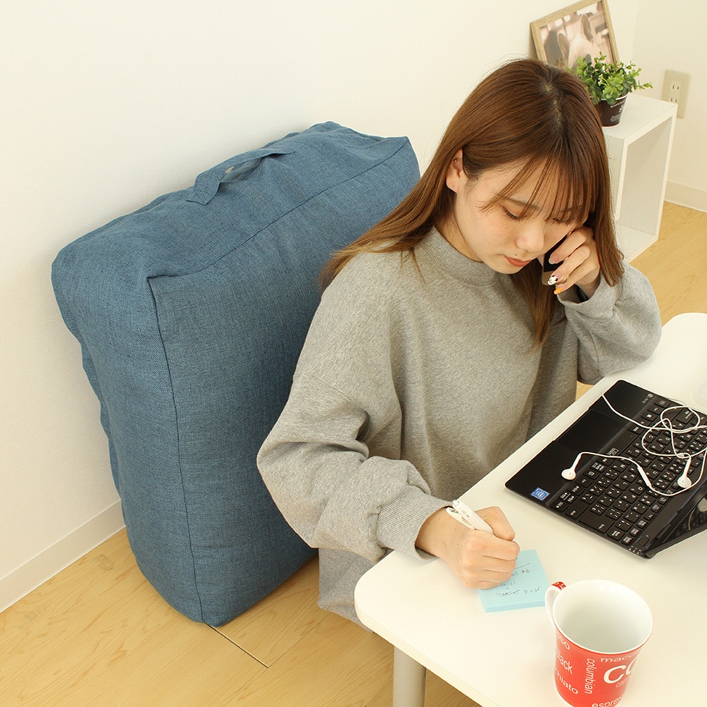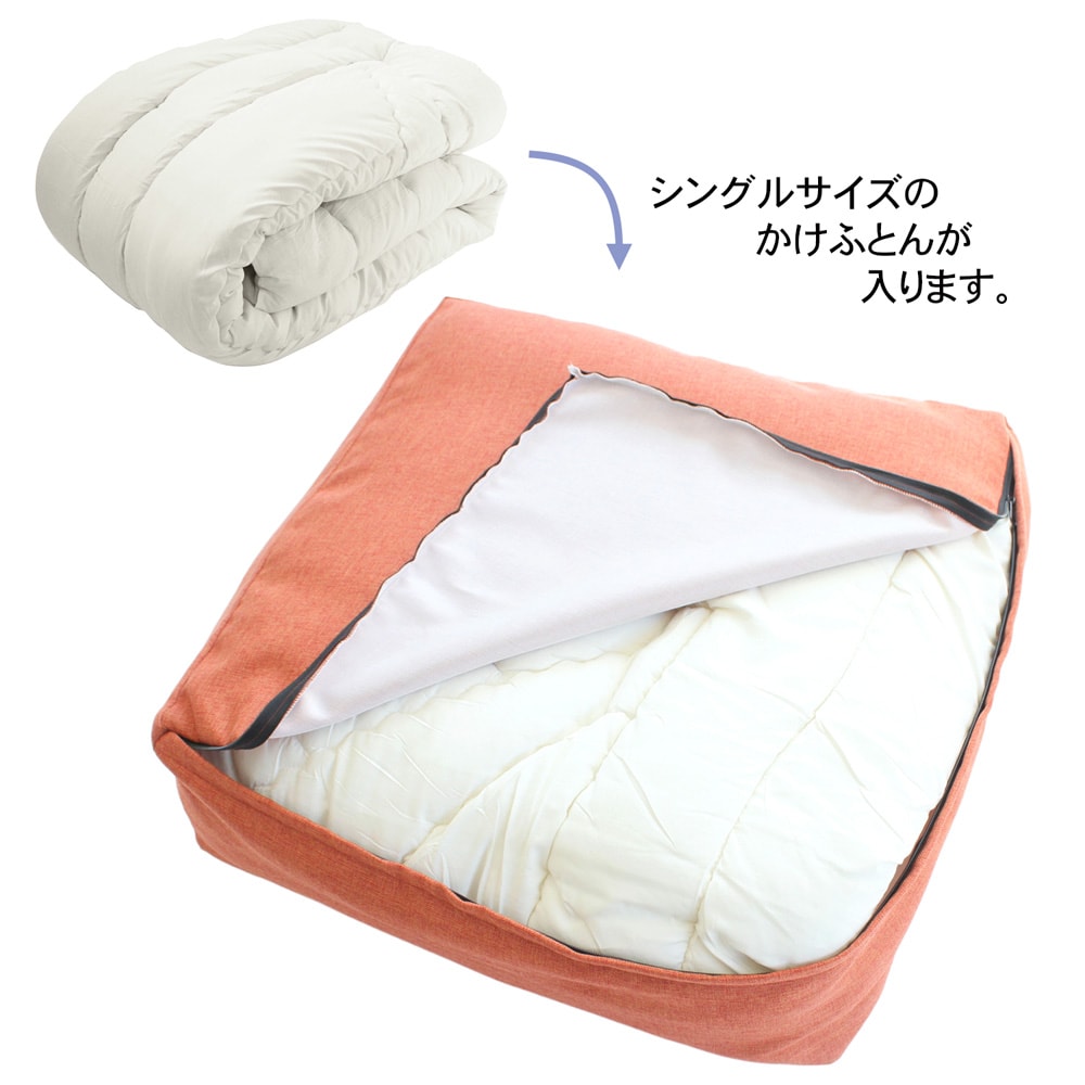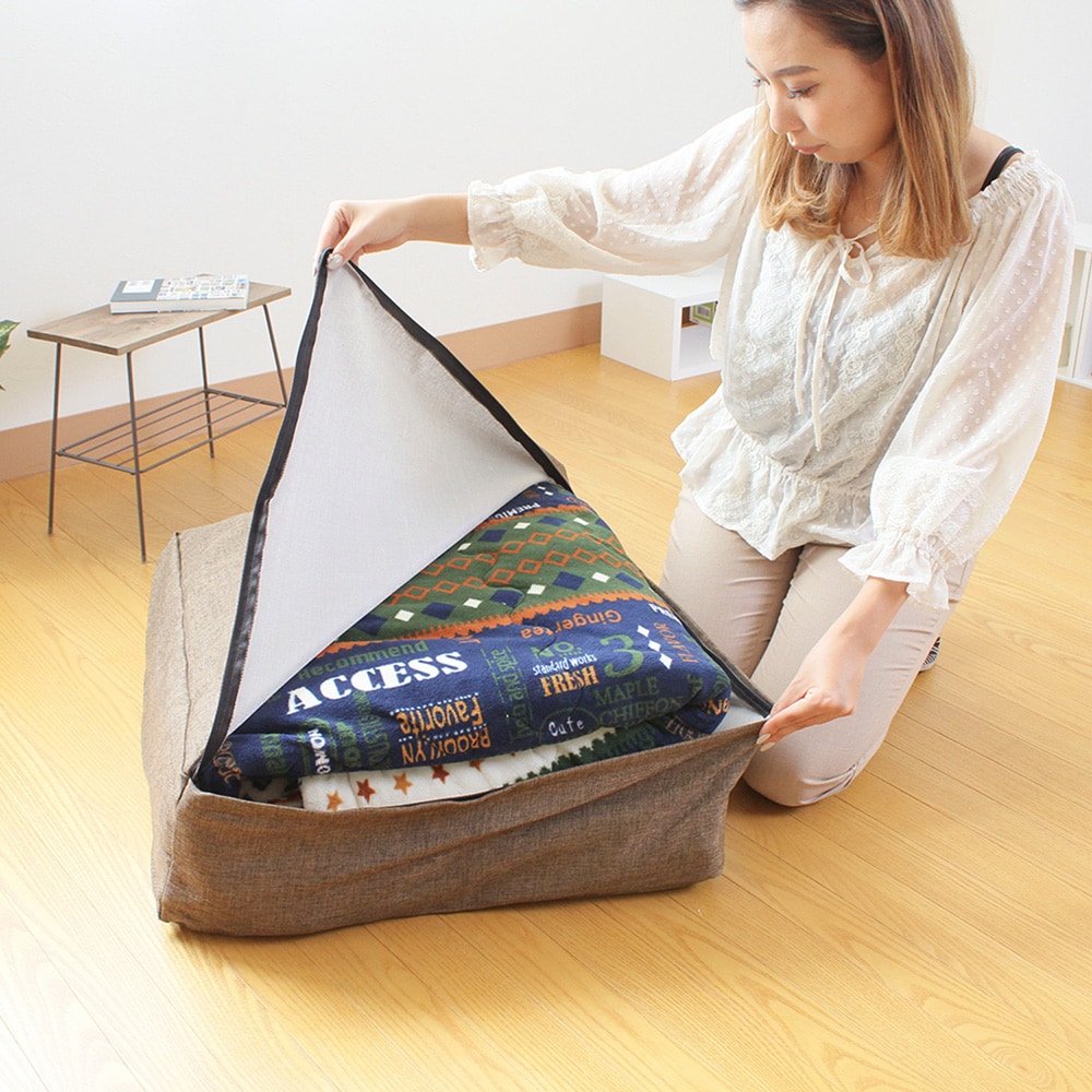 ●使用していないかけ布団を収納することで特大のクッションとして使用できる収納袋です。