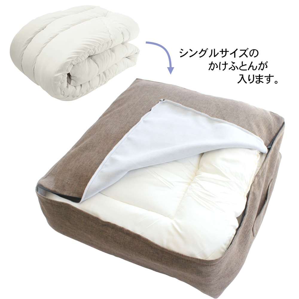 かけ布団がクッションになる収納袋