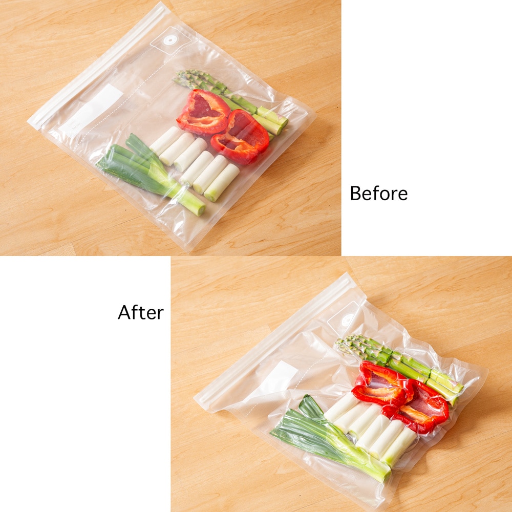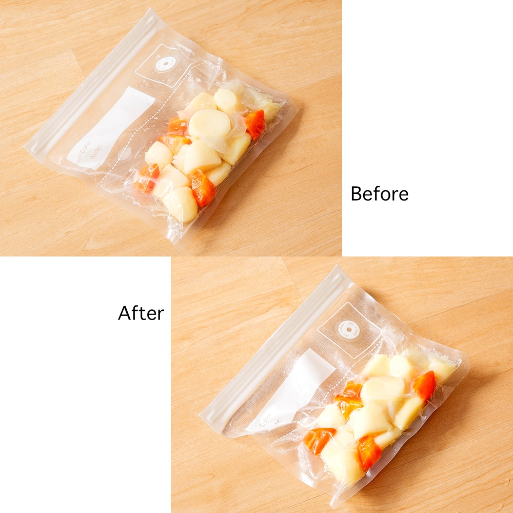 真空保存で、食品の酸化を防ぎ、野菜や肉のおいしさをキープ