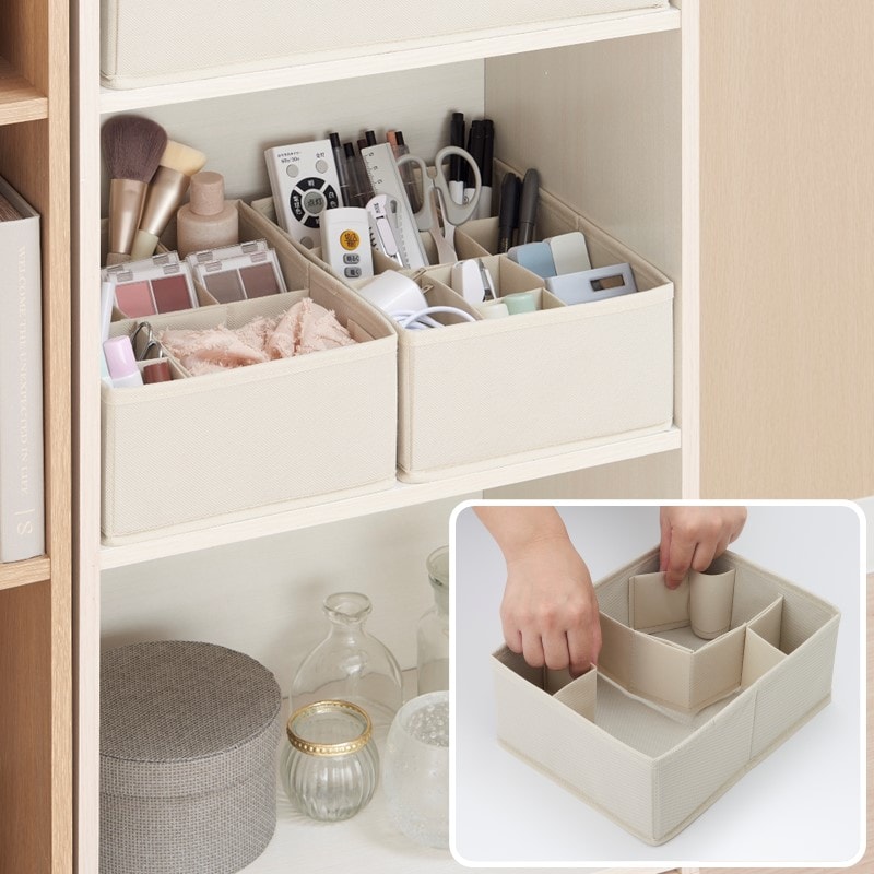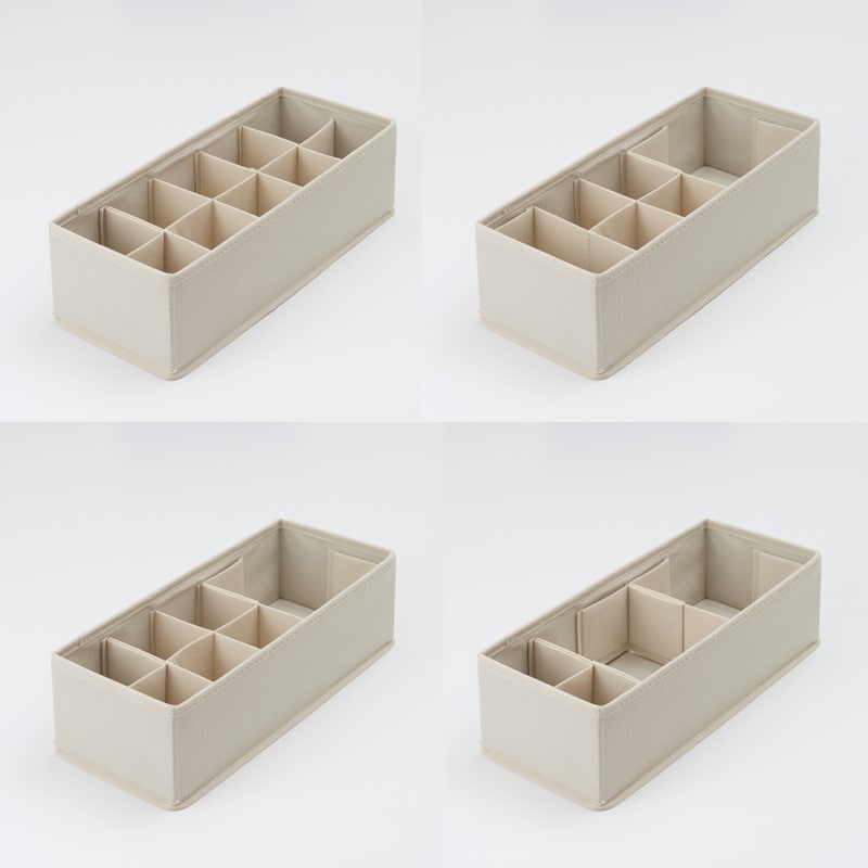 ●収納したいものにあわせて中の仕切りサイズを自由に変えられます。