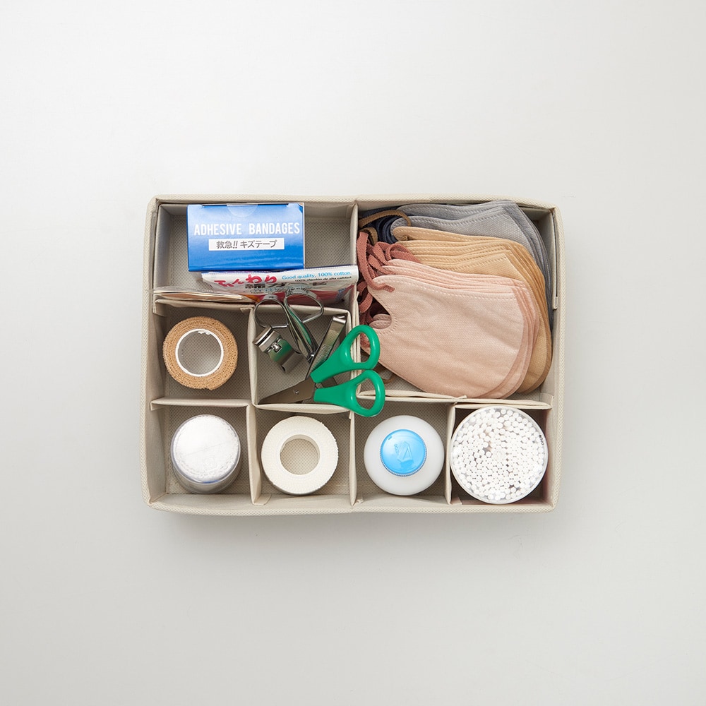 ●サイズ違いのものをまとめて一つの収納ボックスに。