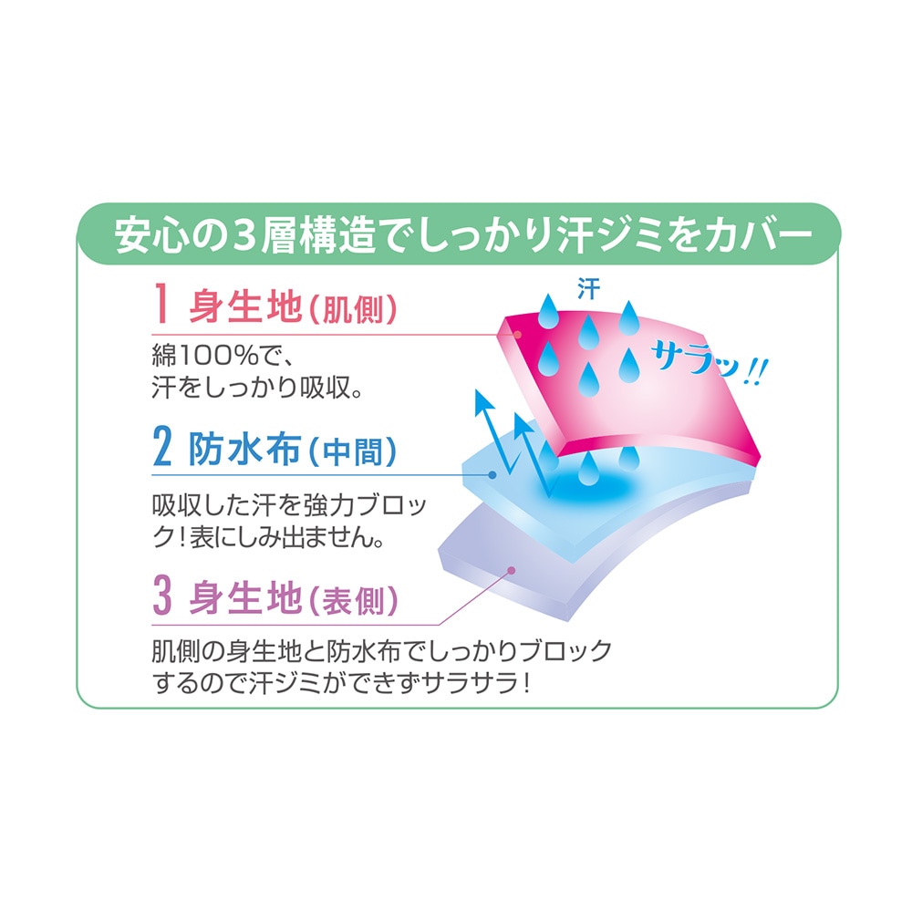 特大パッドでワキ汗をしっかり吸収!汗ジミ対策の強い味方