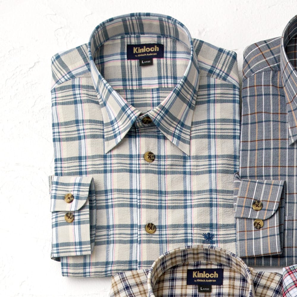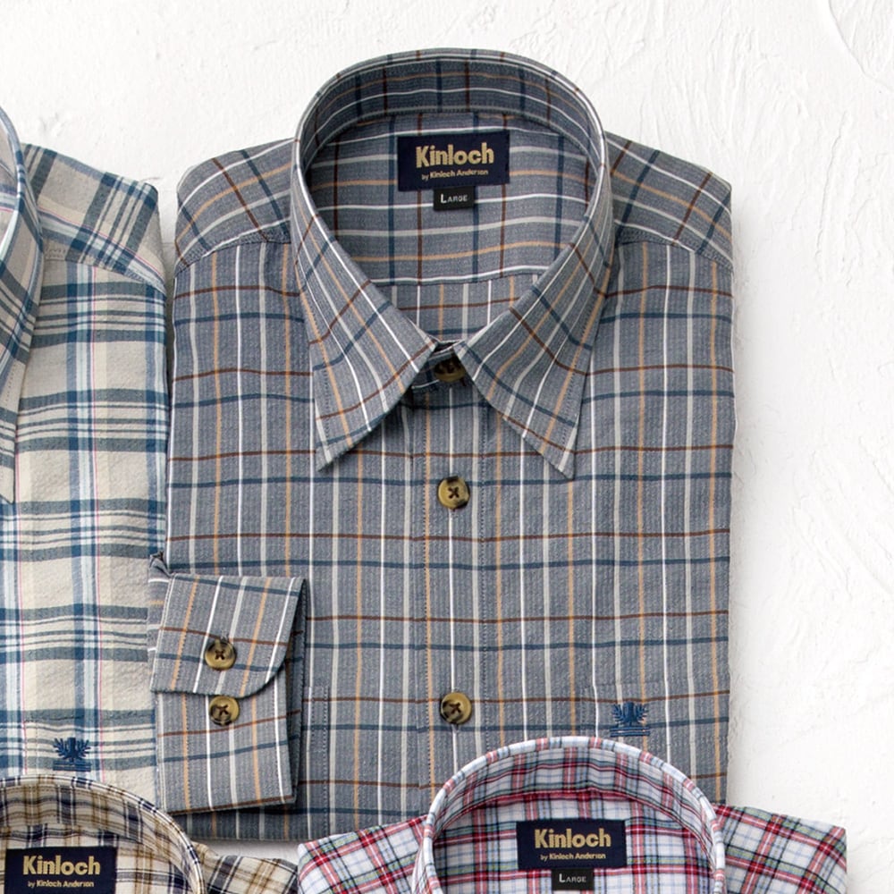 しじら織チェック柄シャツ