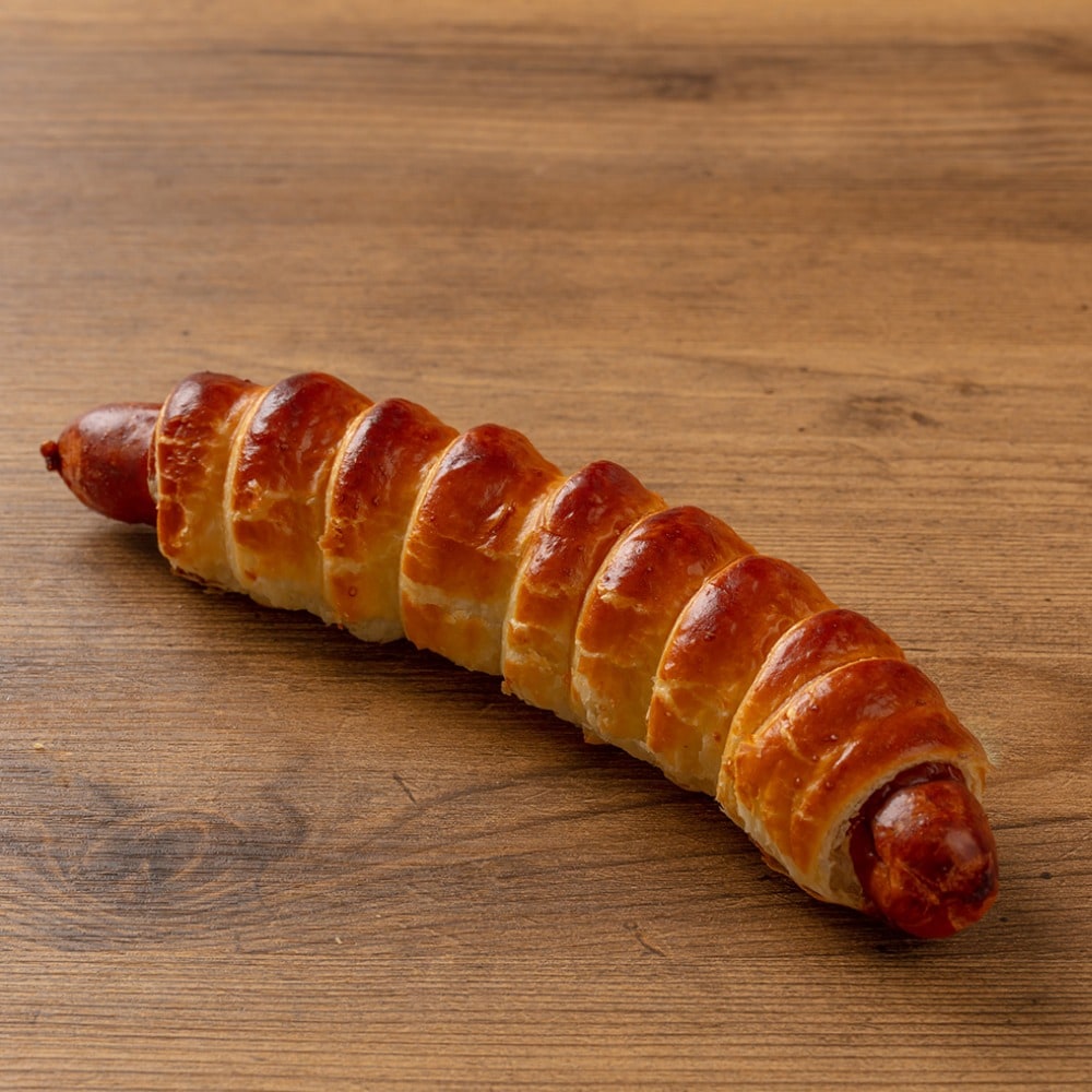 ●粗挽きソーセージパイ:粗挽きソーセージにパイ生地を巻いて焼き上げました