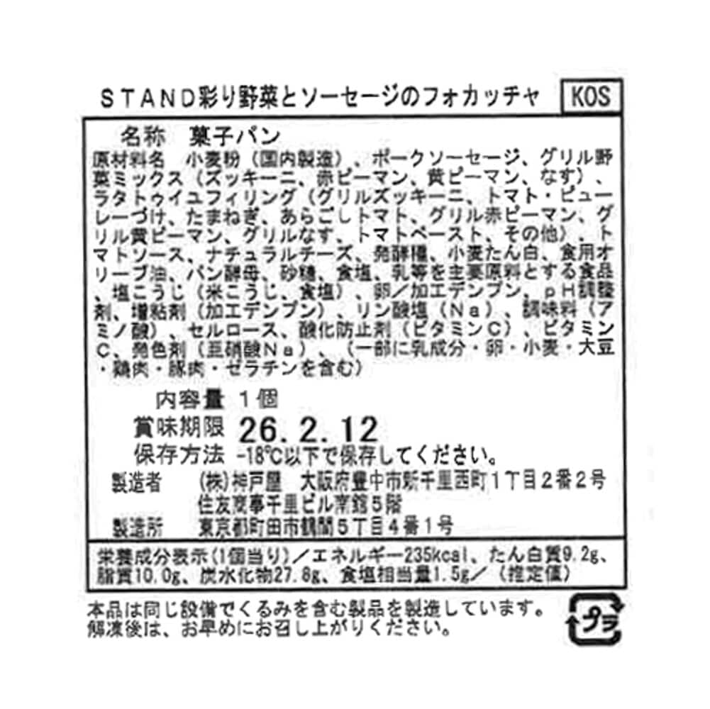 ●彩り野菜とソーセージのフォカッチャ:旨みとコクが詰まったソーセージとトマトソースに和えた彩りの良い野菜をフォカッチャにのせて、風味豊かに焼き上げました。