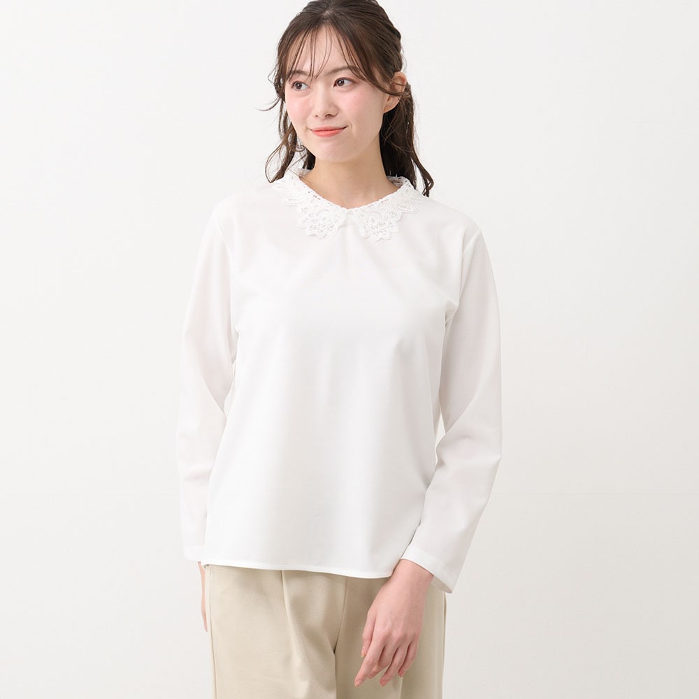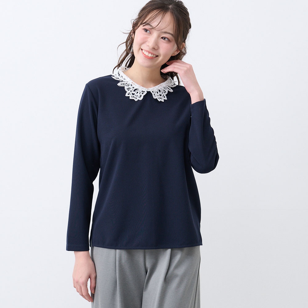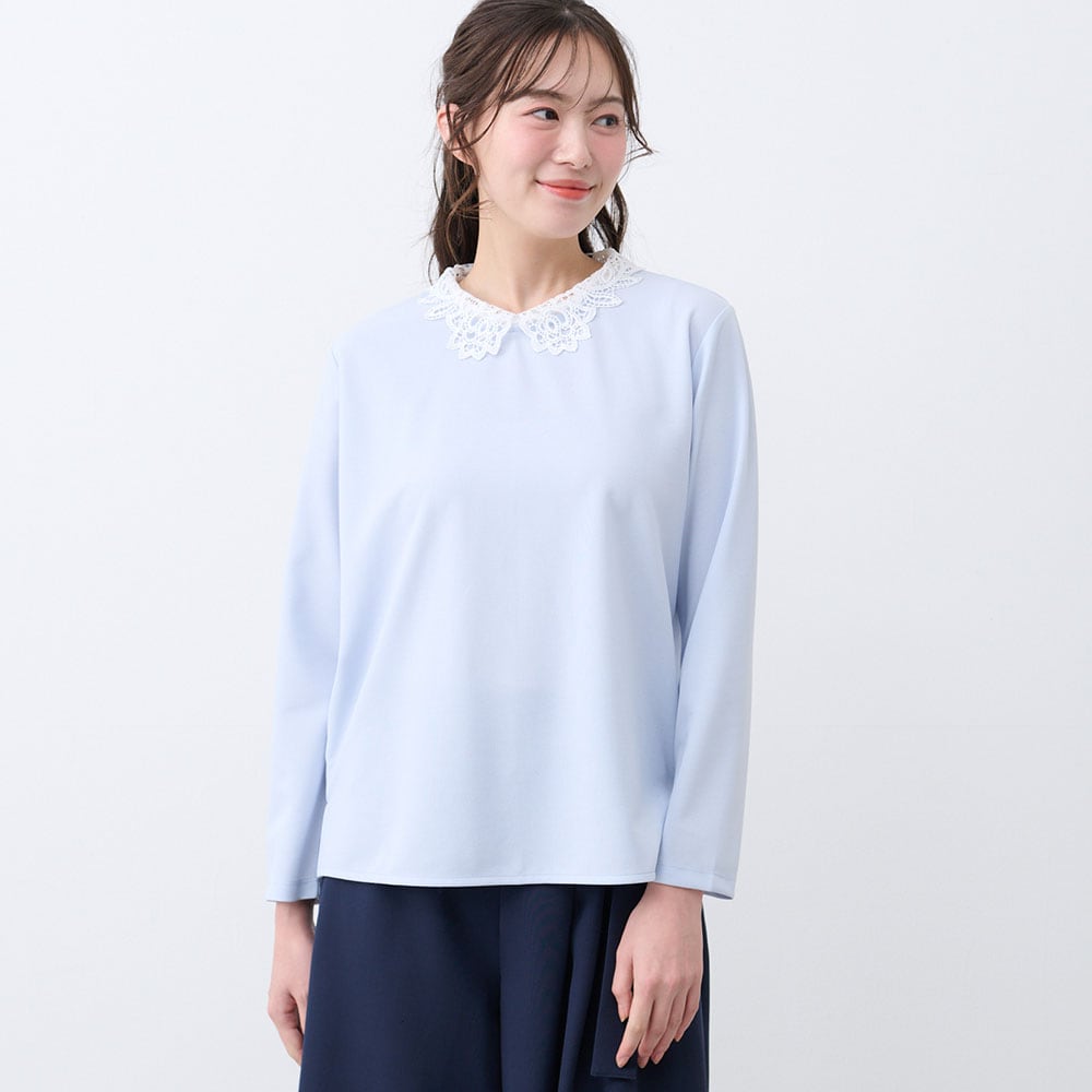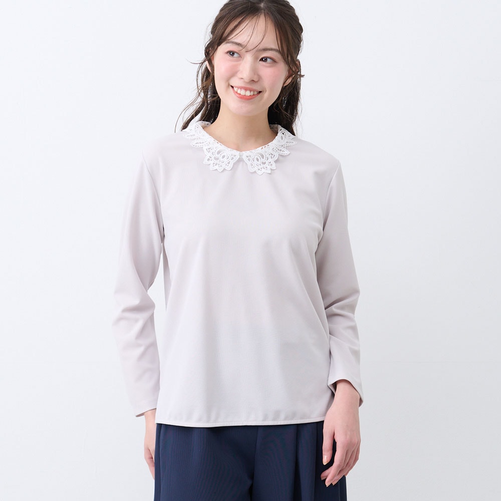 上品なムード漂うレース襟付きのジョーゼットプルオーバー
