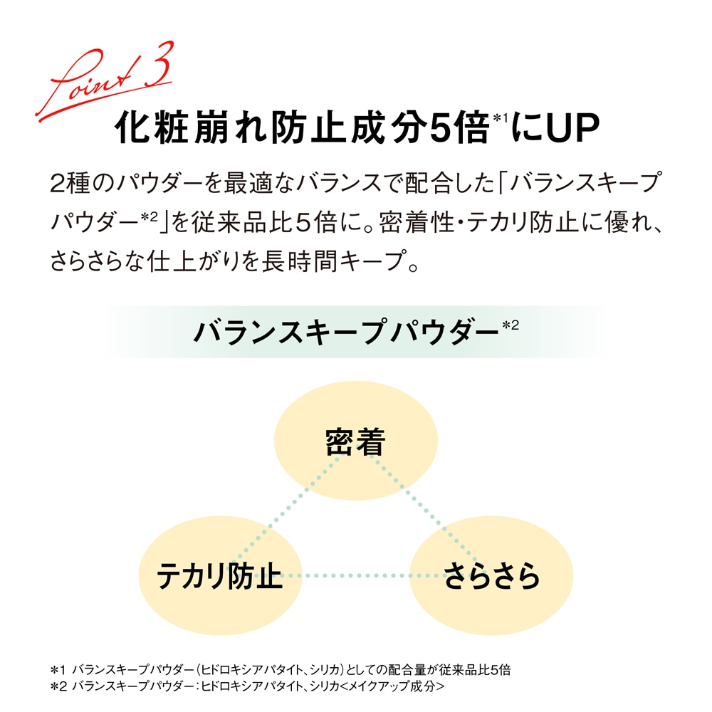 さらにパウダーの機能性を強化し、化粧持ち・崩れにくさもアップしました。