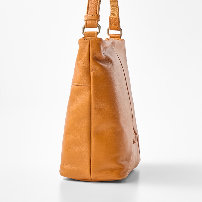 ソフトな肌触りで手に馴染みやすい、本革スクエア型ショルダーバッグ