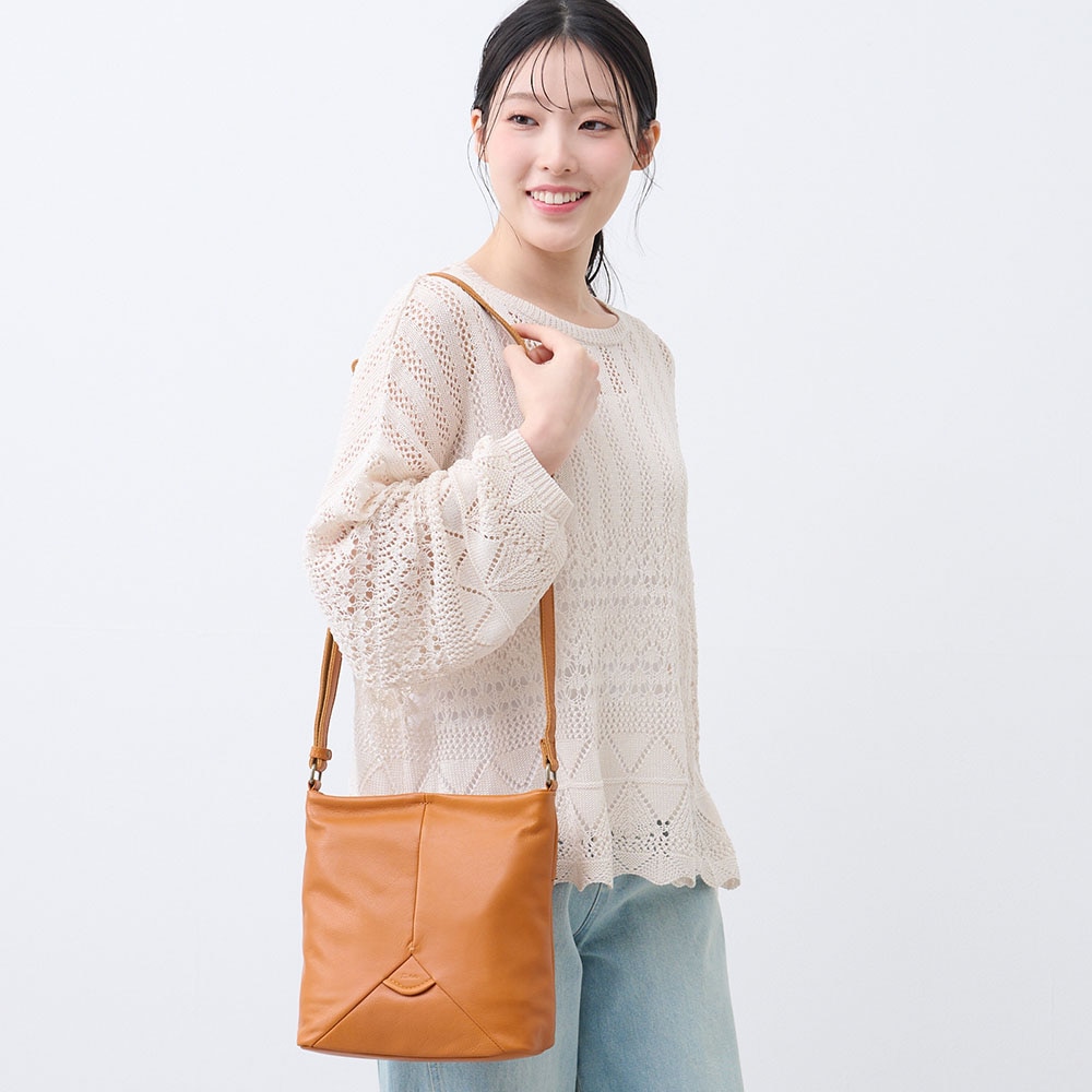 ソフトで軽やかな本革スクエア型ショルダーバッグ