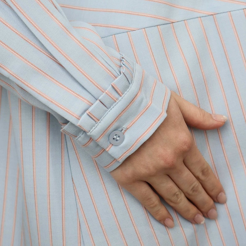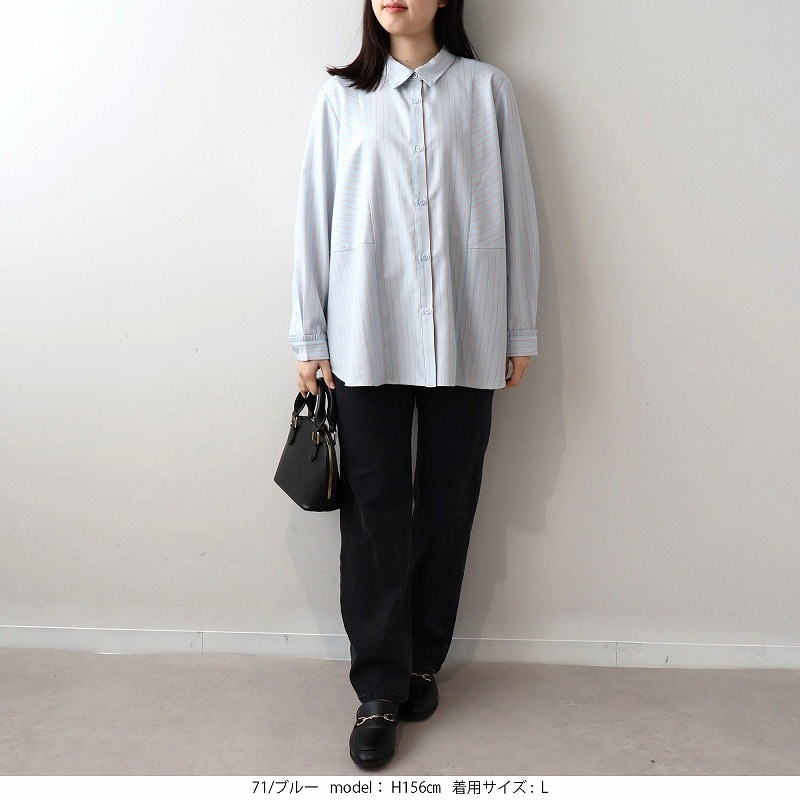 着やすくて仕事着としてもいいと思いますが袖が少し短めです。身長160cm以上ある方は注意した方が良いかも。袖口のフリルですが、少し乾きにくいかもしれません。