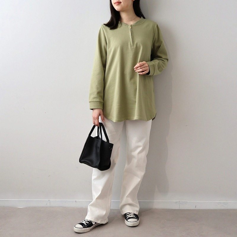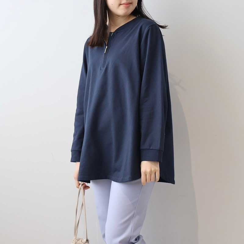 写真で見た時は感じなかったのですが、届いて実物を見てみたら襟周りのリブと色が紺(ネイビー)のせいか学校の体操着っぽいな…と。