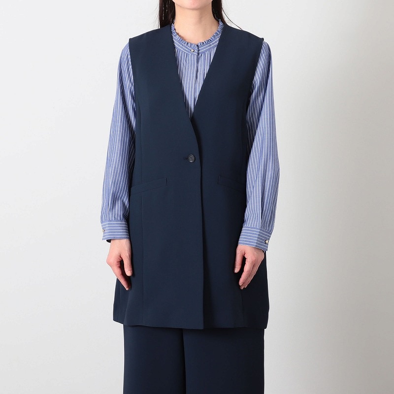 ブラウスやカットソーに羽織るだけで、品よく仕上がる主役ジレ。