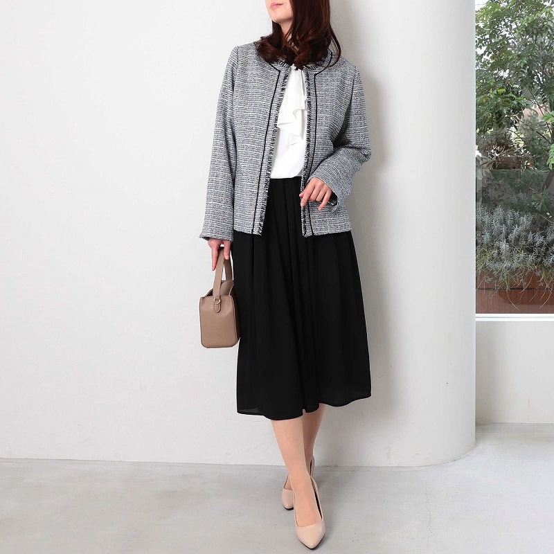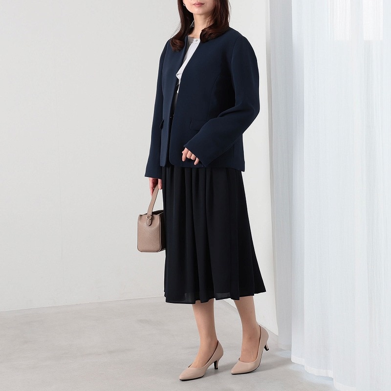 ジャケットやブラウスと合わせれば、フォーマルな場にも自信を持って着用できるセレモニースタイルが完成します。