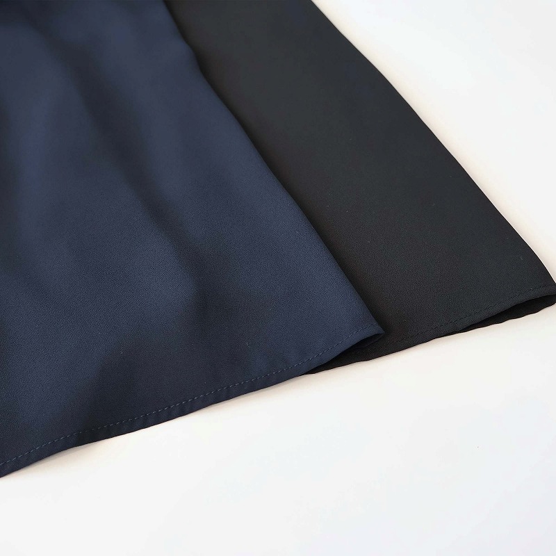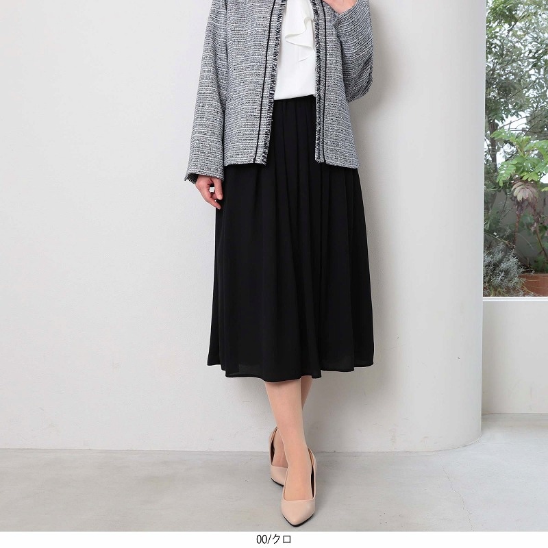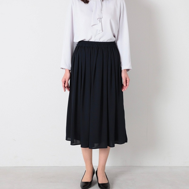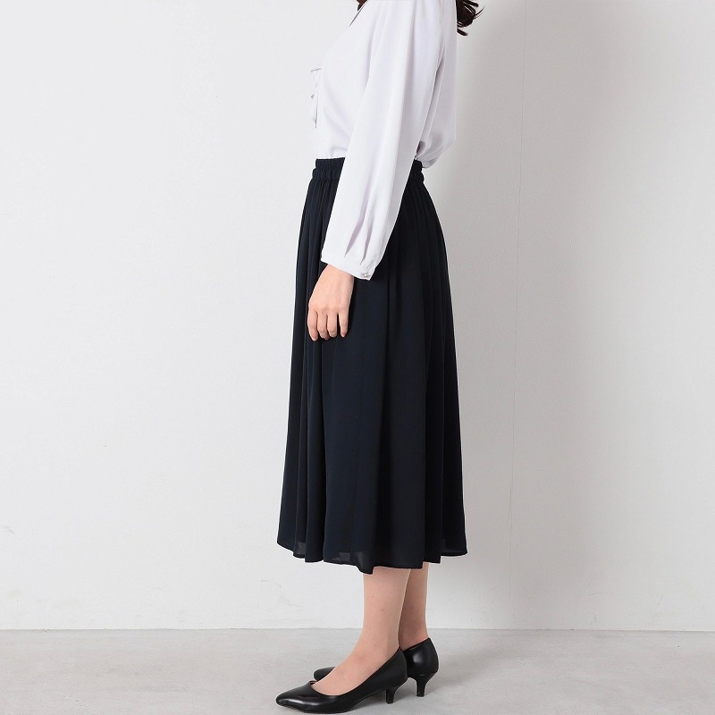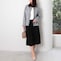 上品なひざ下丈は、座った時にも膝が隠れる安心感があり、ビジネスやセレモニーなど様々なシーンに対応するシンプルなデザインです。