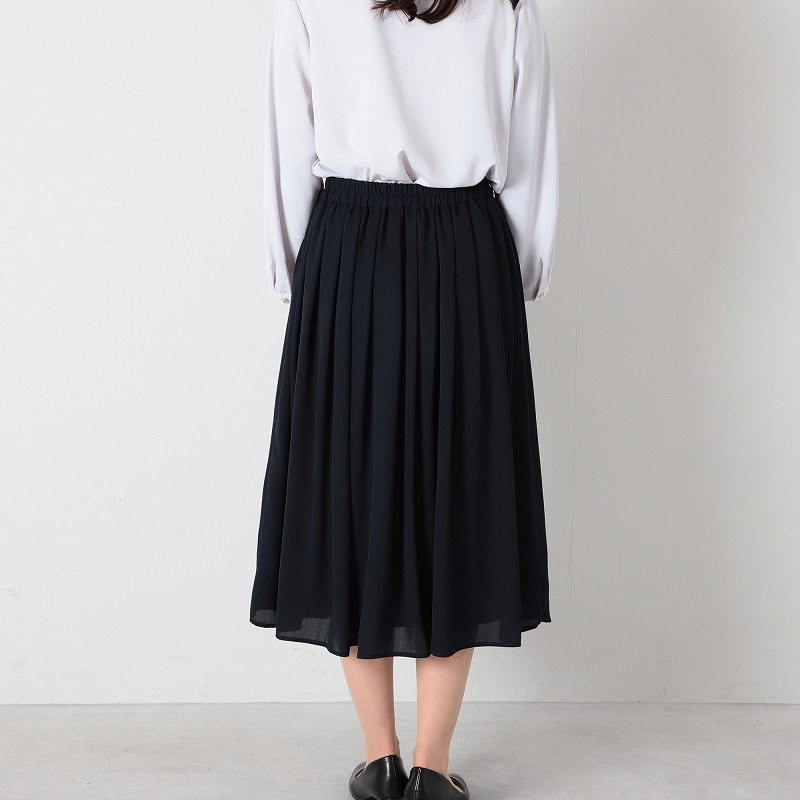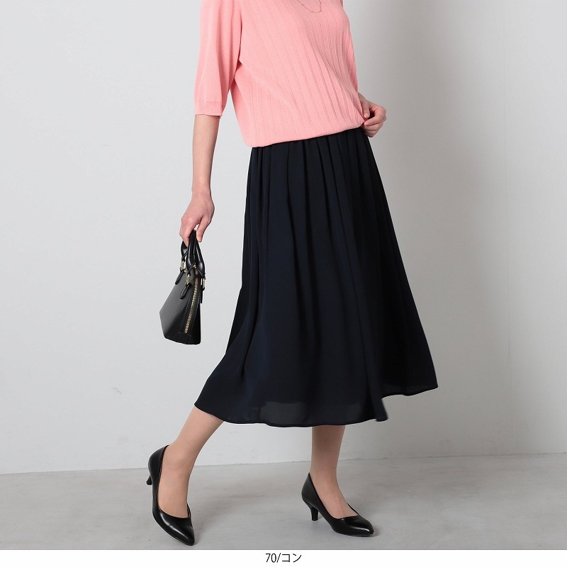 楽なのにきちんと見える。上品ジョーゼット素材のプリーツ風Aラインスカート