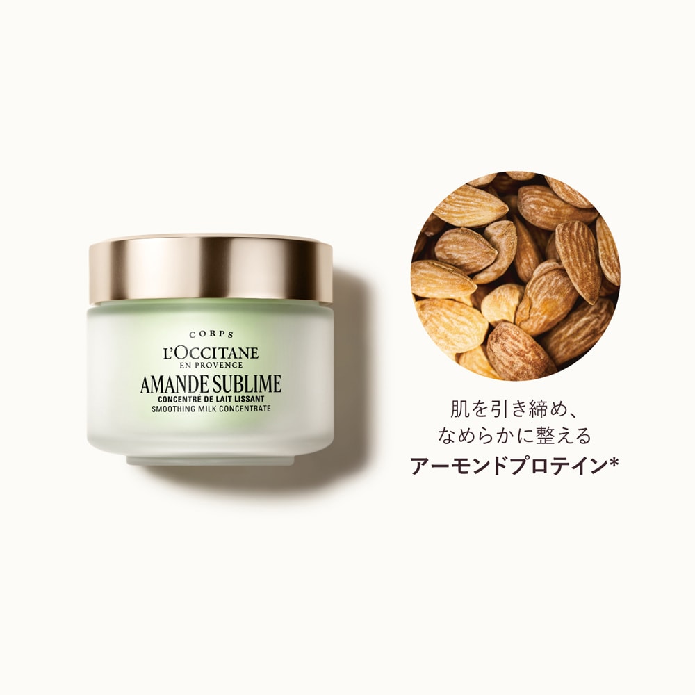 アーモンドプロテイン(*1)と肌引き締め成分(*2)配合。とろりとしたテクスチャーで、ぴんと弾む美しいボディ肌へ。