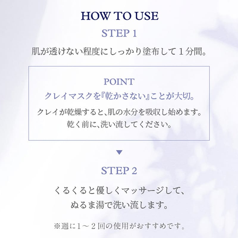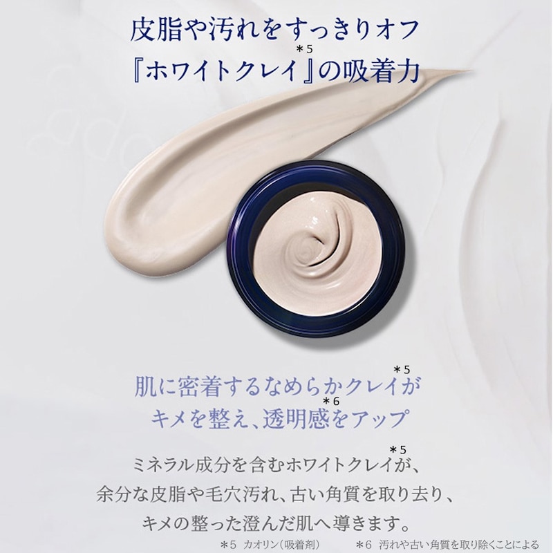 肌の乾きをケアしつつ、ホワイトクレイ(※2)の吸着力で皮脂汚れや古い角質をすっきりオフします。
