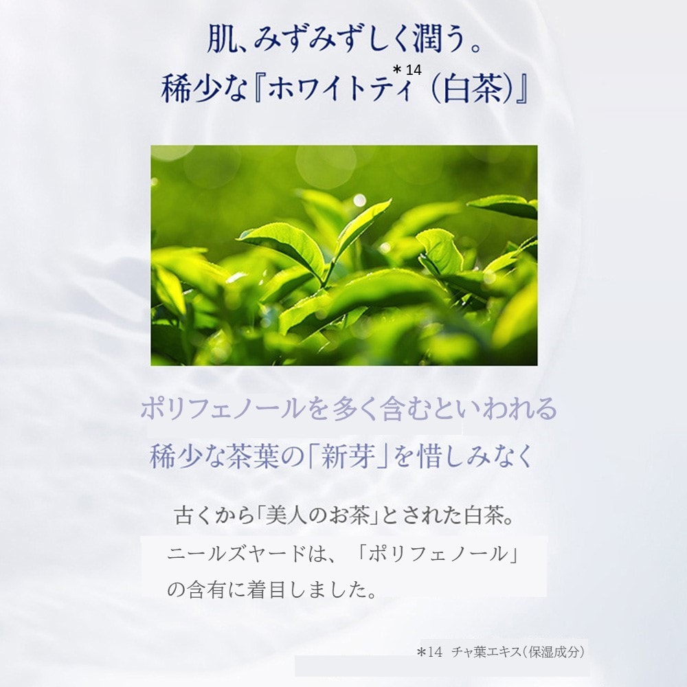 茶葉の中でも稀少なホワイトティ(白茶)のうち、高濃度ポリフェノールを含む新芽から抽出したエキス(※1)を配合。