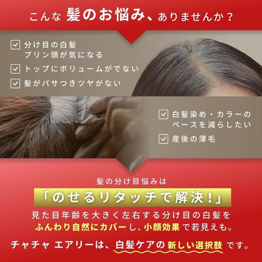 「のせるリタッチ」という新発想で、気になる髪の分け目や伸びかけの白髪を自然にカバー。