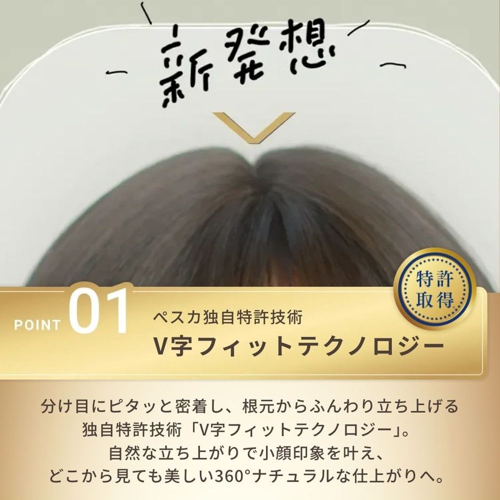 クリップ・ピンは不使用で分け目にピタッと密着し、髪の毛の自然な立ち上がりを再現します。