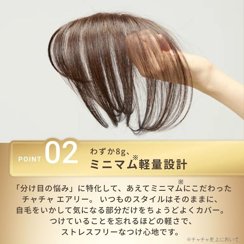 また、分け目のお悩みに特化してあえてミニマムにつくられているから、軽量8gのストレスフリーな着け心地。
