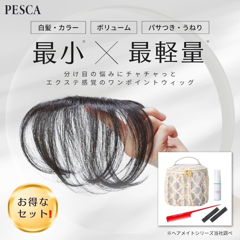 ペスカで人気の部分用ウィッグから、ウィッグ本体+周辺アイテムがセットになったお得なキットが登場しました。