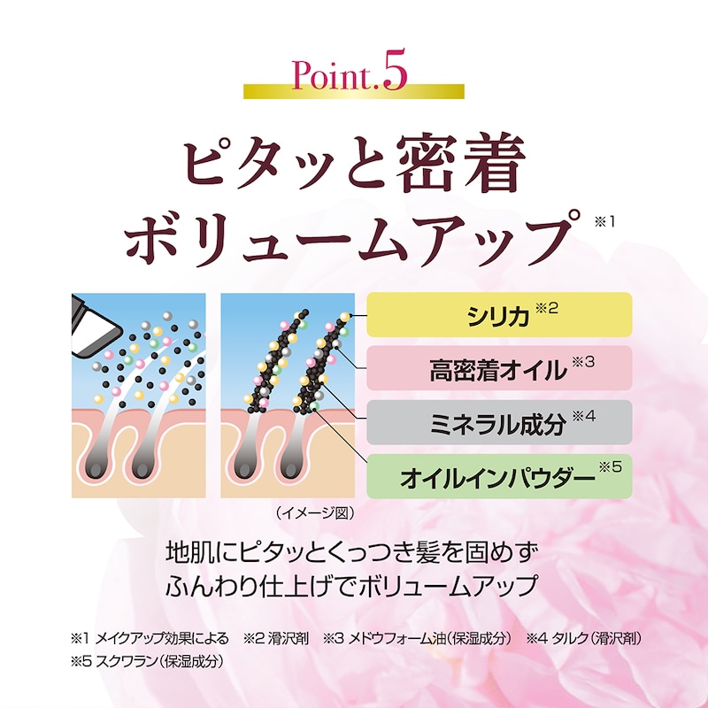 シリコン処理したタルク配合(※1)で、パウダーが地肌にピタっと密着。