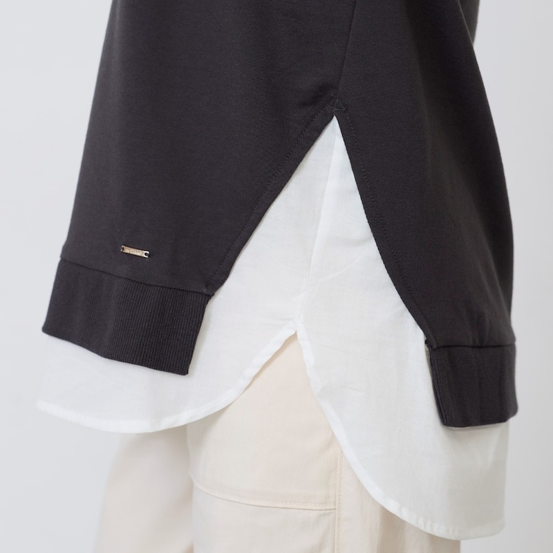 重ね着風の裾デザインで1枚でもこなれ感を演出