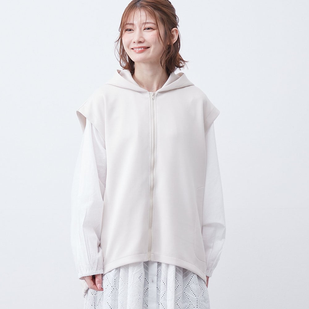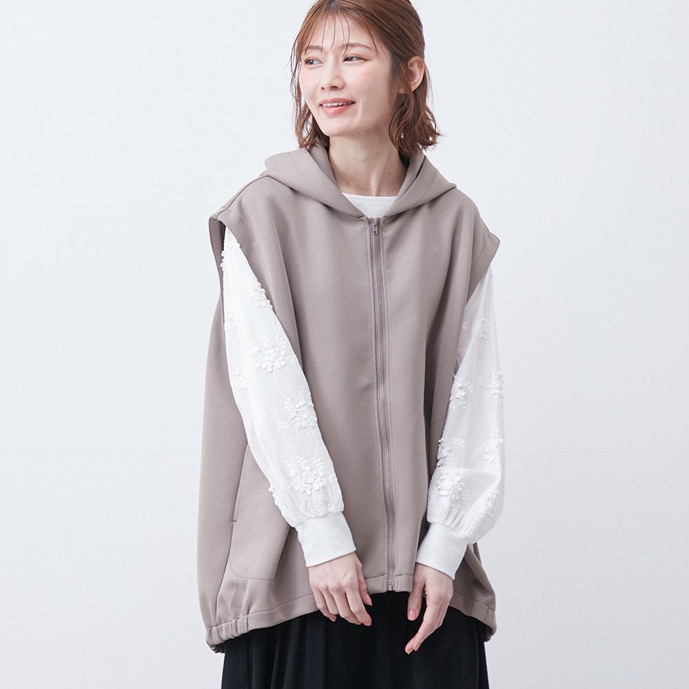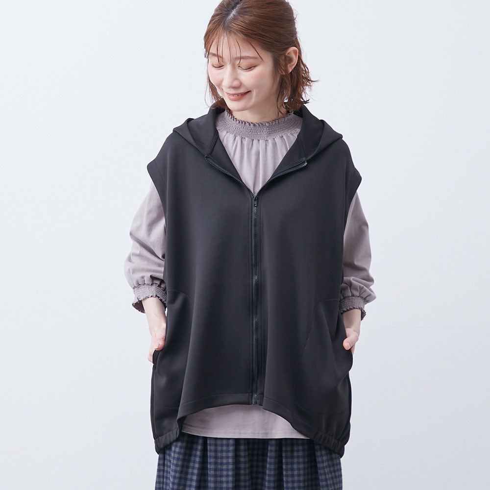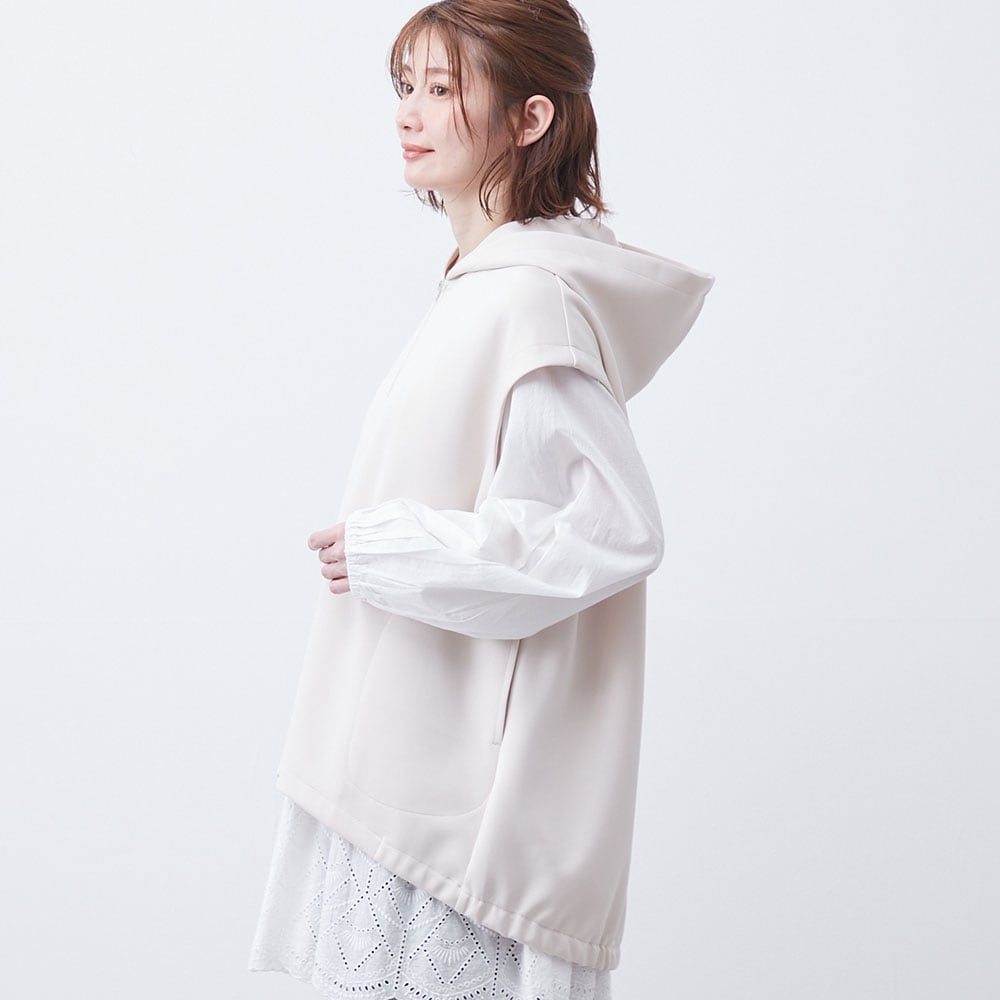 1点投入でおしゃれ感が高まる、カジュアルなフード付きジレ