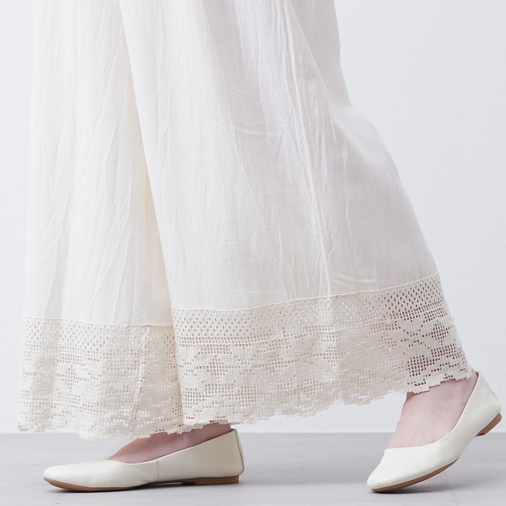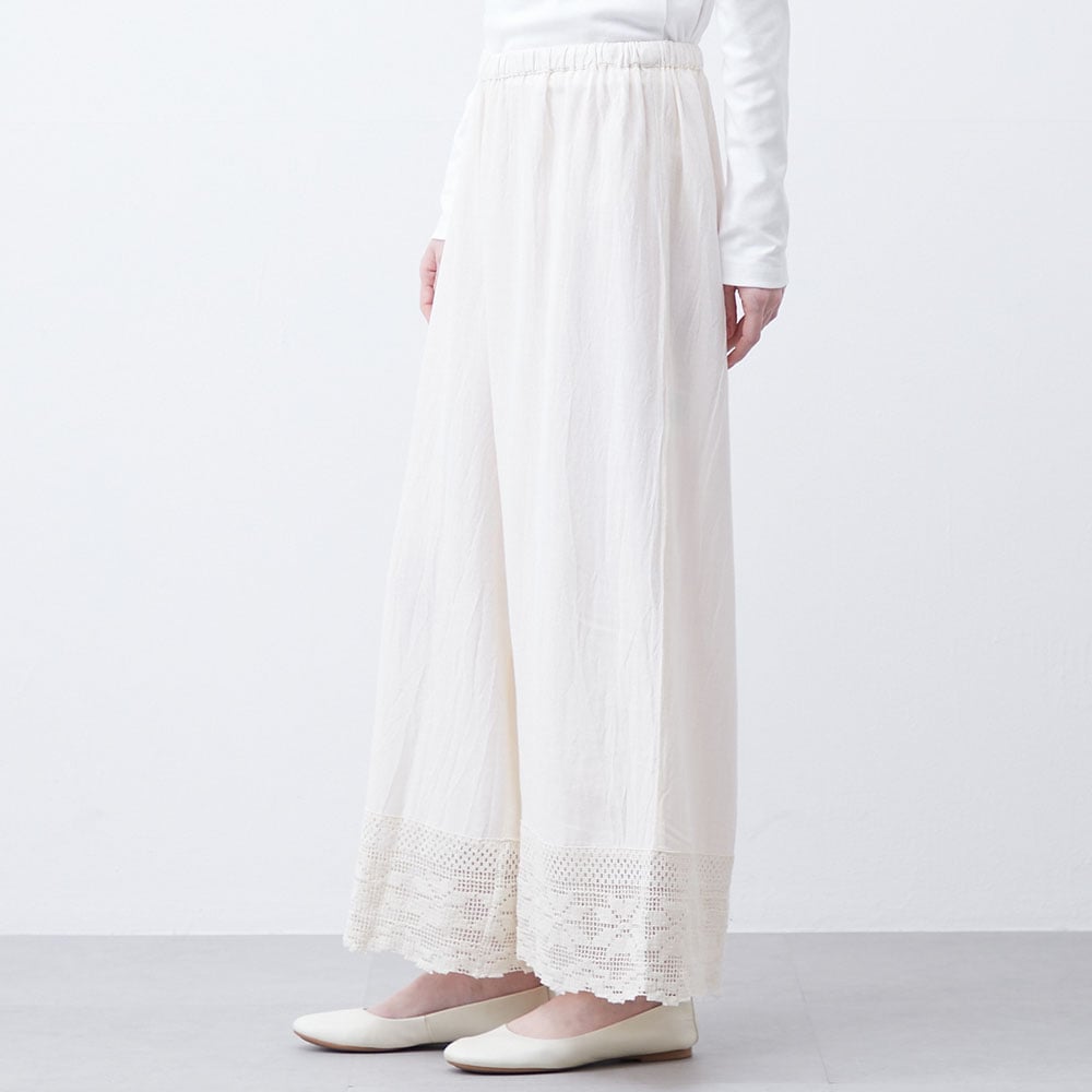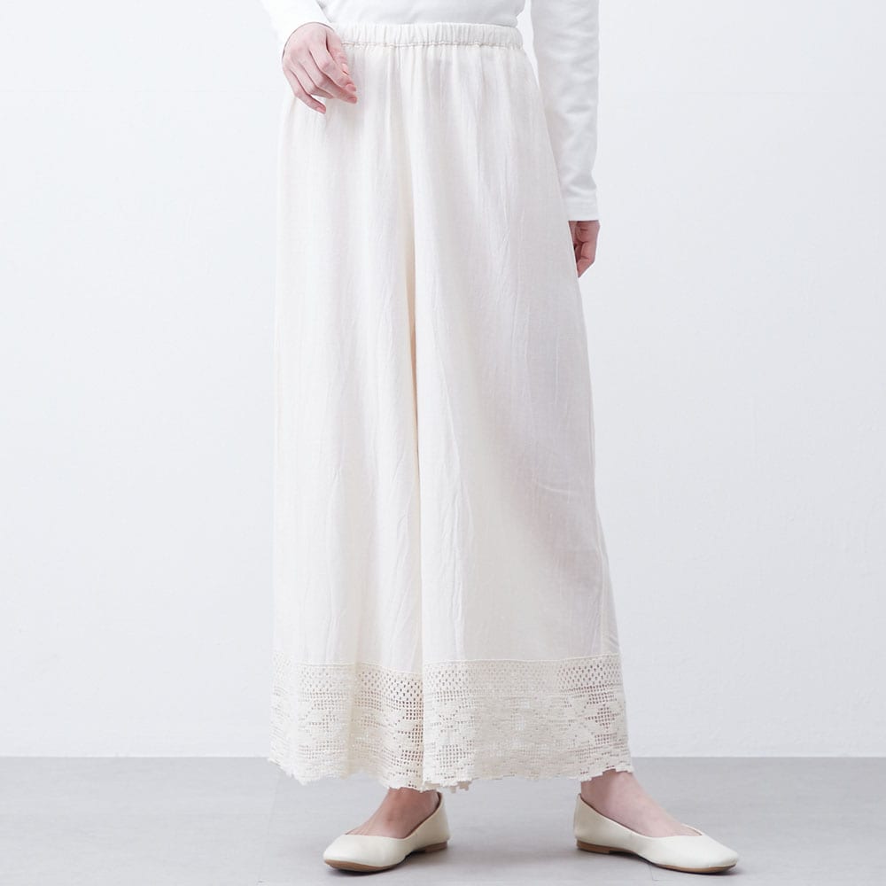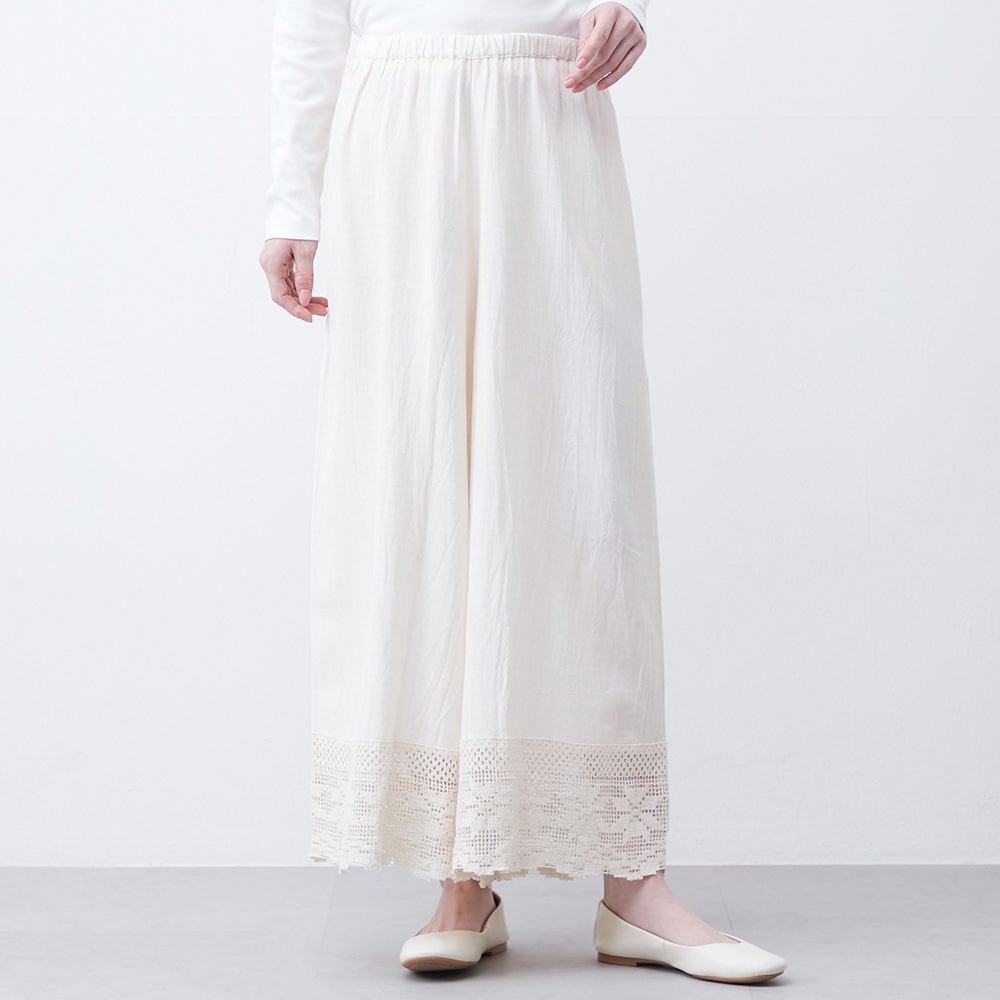 春夏のレイヤードに活躍!綿麻レーヨンのレース切替えぺチパンツ