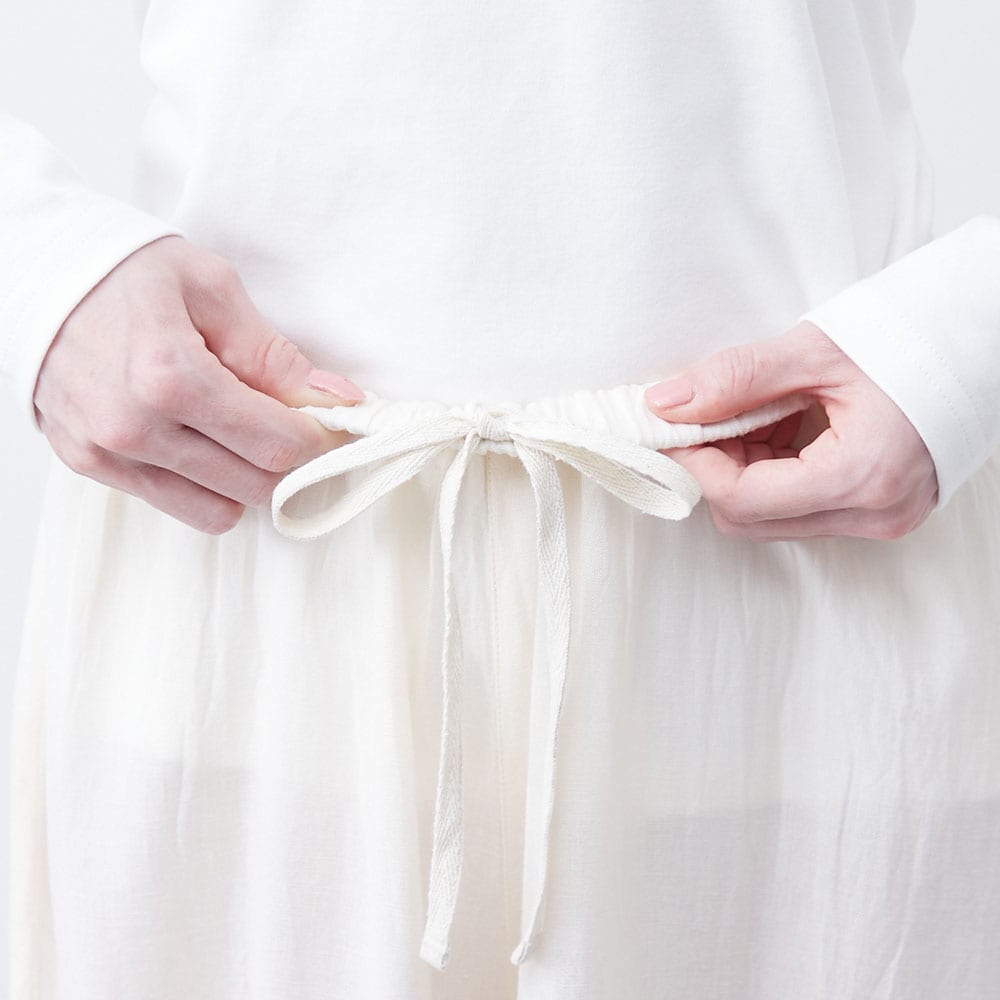 ・おなか周りを締め付けず、楽に着られるウエストゴム仕様